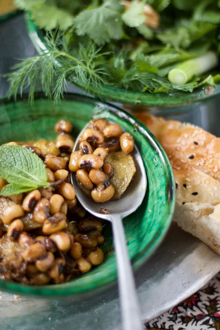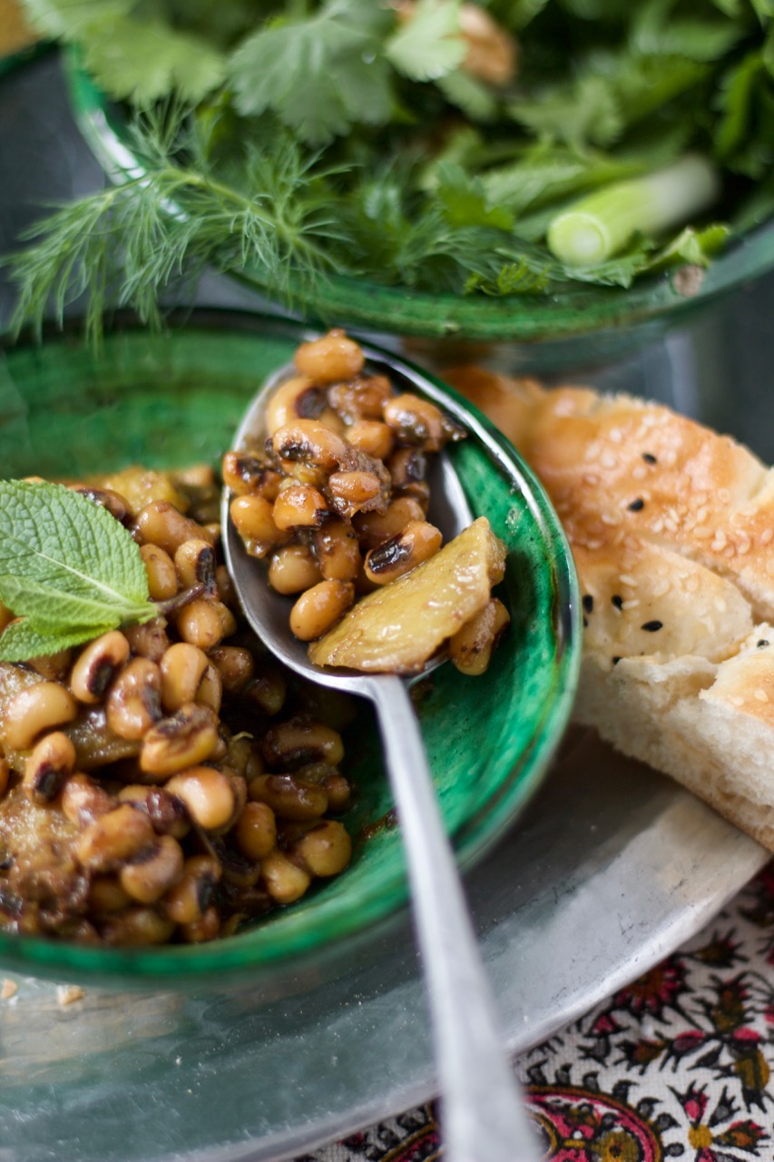 Yatimak - Auberginen mit Schwarzaugenbohnen in Tamarinden-Sauce یتیمک