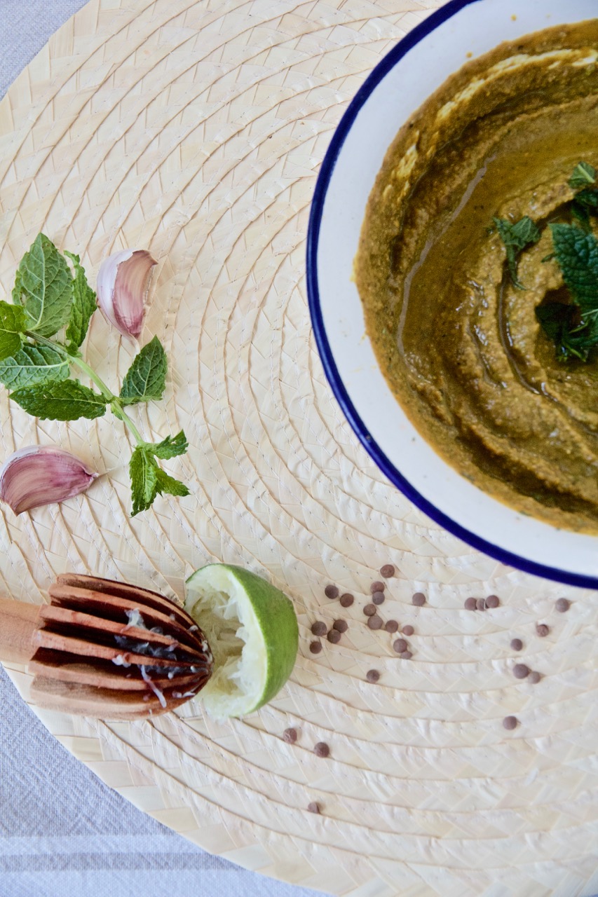 Dieser leckere vegane Aufstrich mit grünen Berglinsen darf auf keinem Mezze-Tisch fehlen, denn er gehört in Persien zu den Mazeh (Mezze).