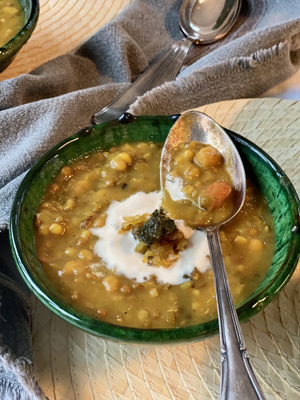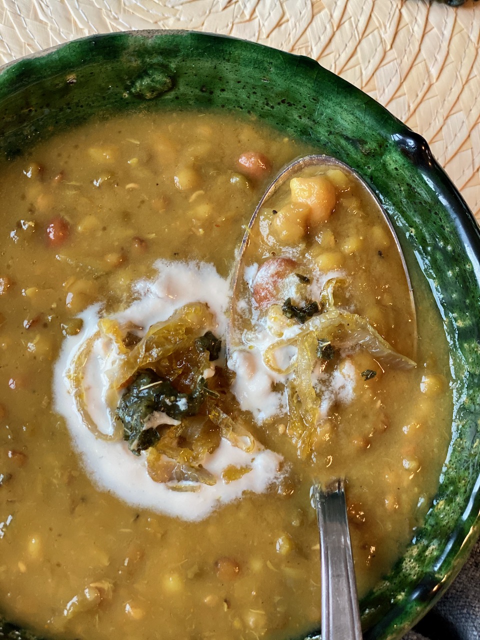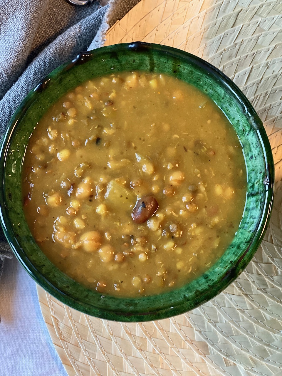 Die dicke Suppe ist sehr kräftigend und nährend, da sie viele pflanzliche Proteine enthält. Durch die vielen Hülsenfrüchte und die Fleischbrühe enthält sie Antioxodantien, Phosphor, Kupfer, Eisen, Magnesium. An Vitamine enthält sie Vitamin A, B6, B12, C und D.