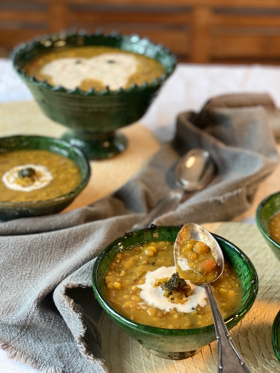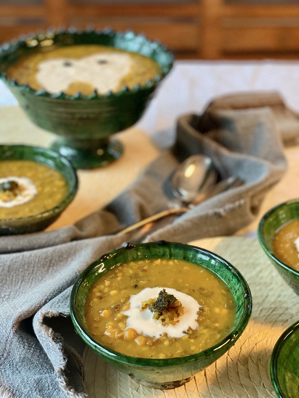 Genauso wie Ash-e Reshte wird diese köstliche dicke Suppe mit Kashk und Piaz Dagh getoppt, nur dass mit Kashk eine Zahnform darauf gemalt wird. Sie schmeckt hervorragend, ist in der Zubereitung total einfach jedoch etwas zeitaufwendig. Am Ende lohnt sich die Wartezeit, ich verspreche es dir. Du kannst sie gerne jeder Zeit zubereiten, da sie total lecker schmeckt. Für das Baby solltest du den Eintopf jedoch pürieren.