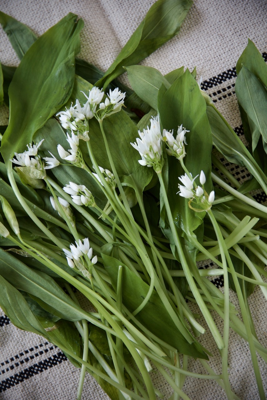 In der Zwischenzeit den Bärlauch waschen, die Stiele entfernen und gut abtrocknen.