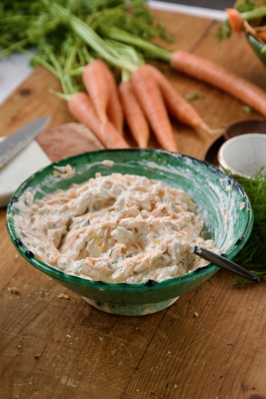Dieser knoffige (Knoblauch) Karotten-Joghurt-Salat ist eine sehr beliebte Vorspeise aus dem Orient. Sowohl in der Türkei, Israel, Indien und Marokko wird dieser Karotten-Joghurt hergestellt. Er gehört definitiv auf jeden Meze Tisch, auf dem verschiedene kalte oder auch warme Meze auf kleinen Tellern und meist mit Rakı serviert werden. Der aromatischer Karotten-Joghurt-Salat wird auch gerne als Beilage zu Fleischgerichte, z. B. Köfte serviert. Die Zubereitungsart kann von Familie zu Familie variieren, denn manche raspeln die Karotten roh in den Joghurt, andere dünsten sie vorher an. Du kannst die Blätterteig-Karotten und den türkischen Karotten-Joghurt Salat am Vortag zubereiten und sie am nächsten Tag für den Osterbrunch ganz relaxed füllen. Die Blätterteig-Karotten können sowohl herzhaft als auch mit einer süßen Füllung zubereitet werden, schau hier habe ich eine süße Füllung für dich.