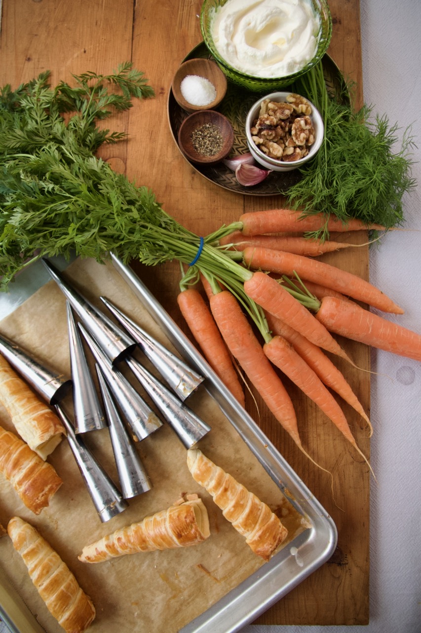 Blätterteig-Karotten gefüllt mit türkischem Karotten-Joghurt-Salat
