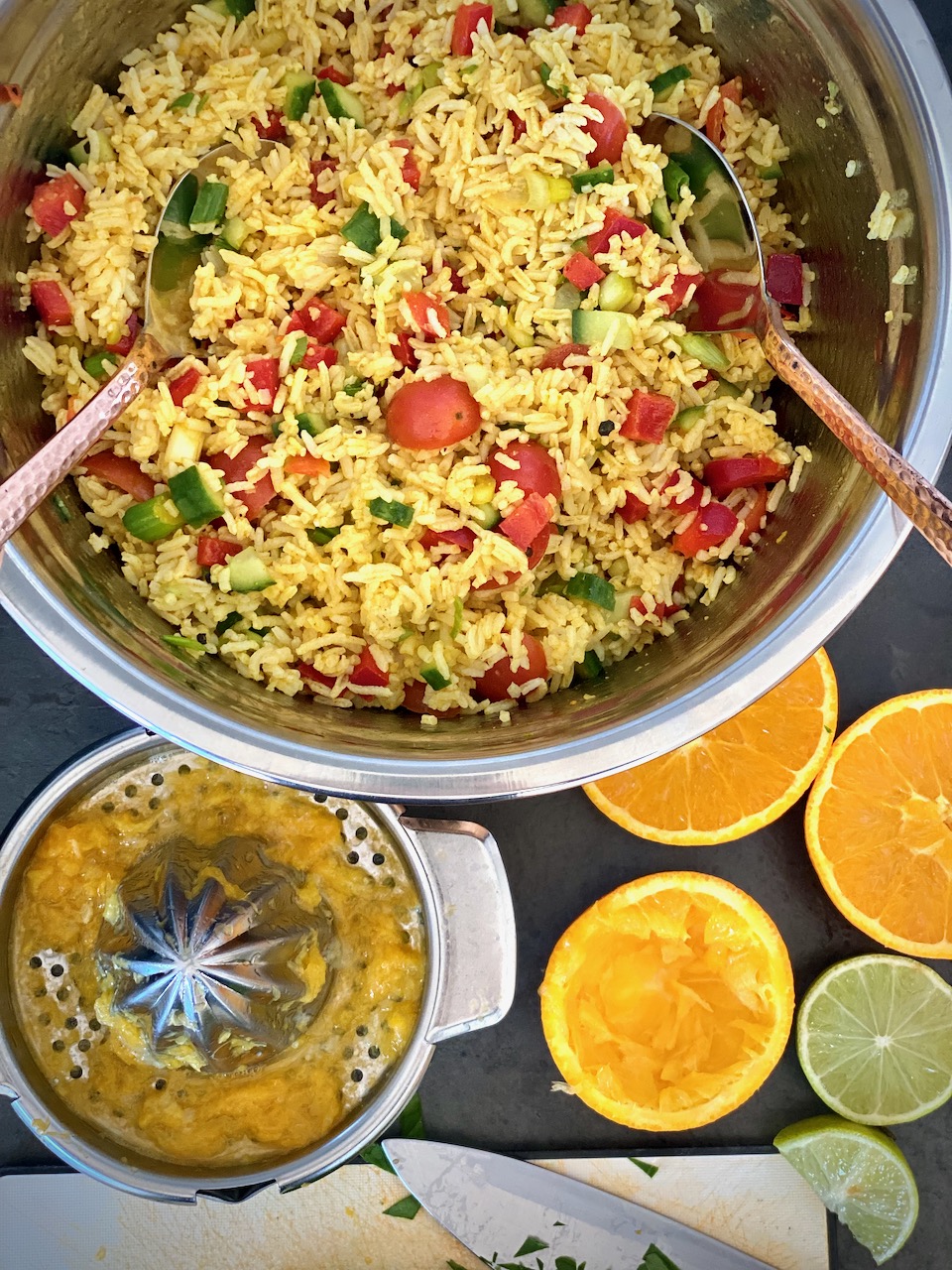 Reis lässt sich so vielfältig verwerten, da ist es echt schade, dass hierzulande eher Kartoffeln und Nudeln im Vordergrund stehen. Ein wirklicher toller Regenbogen, Dein Salat.