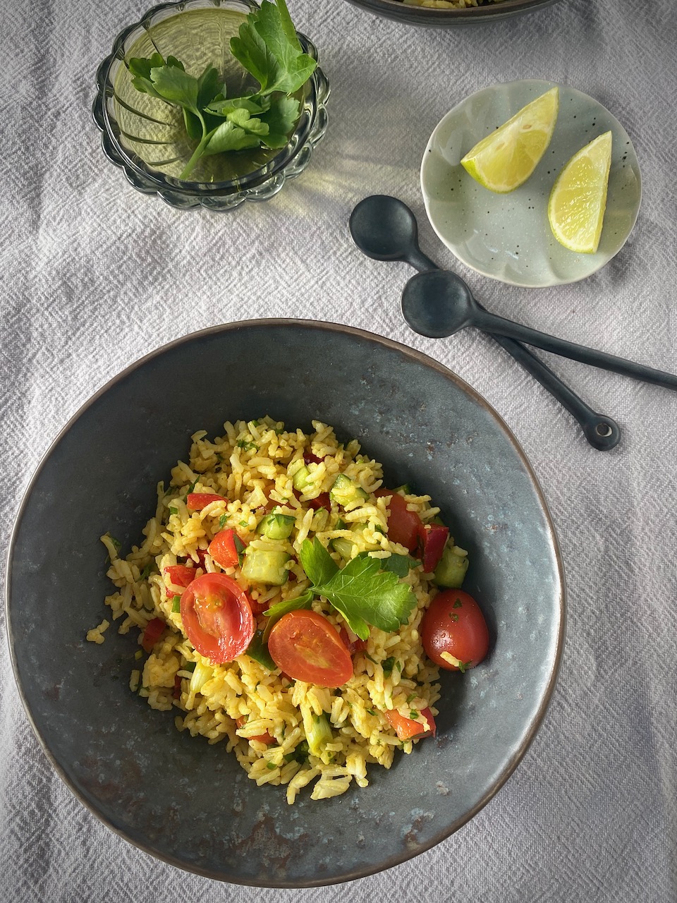 dein Reissalat sieht so lecker aus und die Zutaten sprechen mich total an. Ich liebe ja Salate und Limette und glatte Petersilie sowieso. Das glaube ich sofort, dass ihr diesen Salat unterwegs genossen habt. Da wäre ich doch zu gern dabei gewesen und hätte gern ein kleines Schüsselchen probiert.