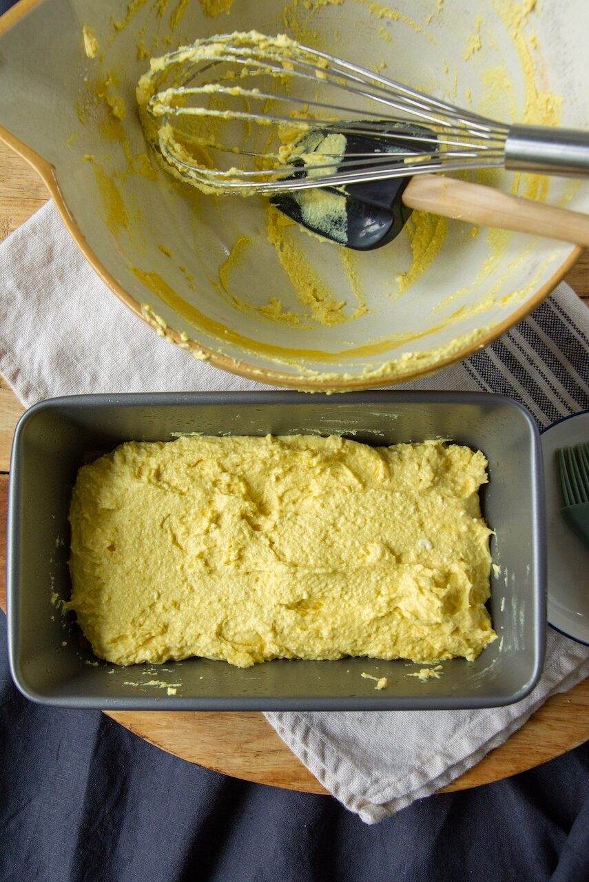 Den Teig in die Kastenform geben und gleichmäßig verteilen.