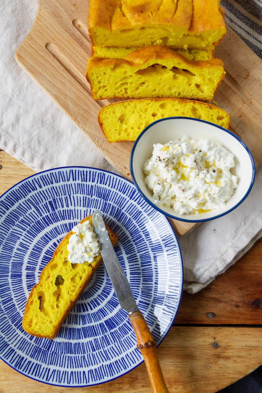 SCHNELLES UND EINFACHES COTTAGE CHEESE BREAD MIT KURKUMA