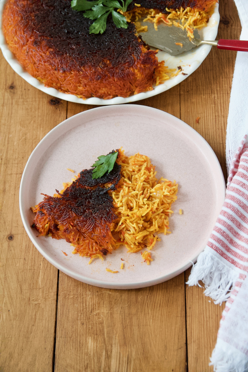 Sabzi Polo – Kräuterreis mit Butter-Safran-Reiskruste,