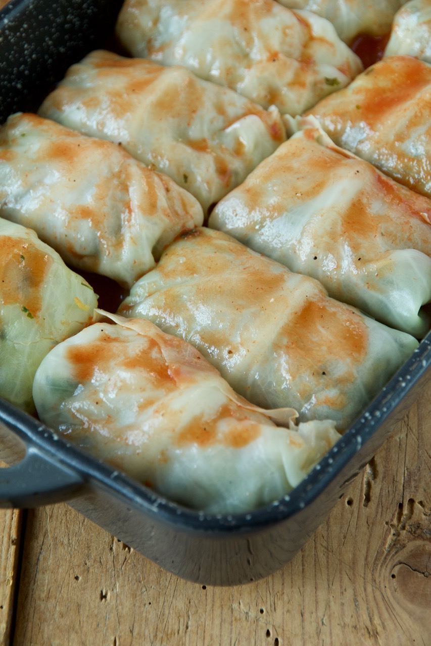 Die Kohlrouladen im vorgeheitzen Backofen bei 200° für ca. 60 – 70 schmoren. Die letzten 5 - 10 Minuten ein Auge darauf halten, damit sie dir nicht verbrennen.