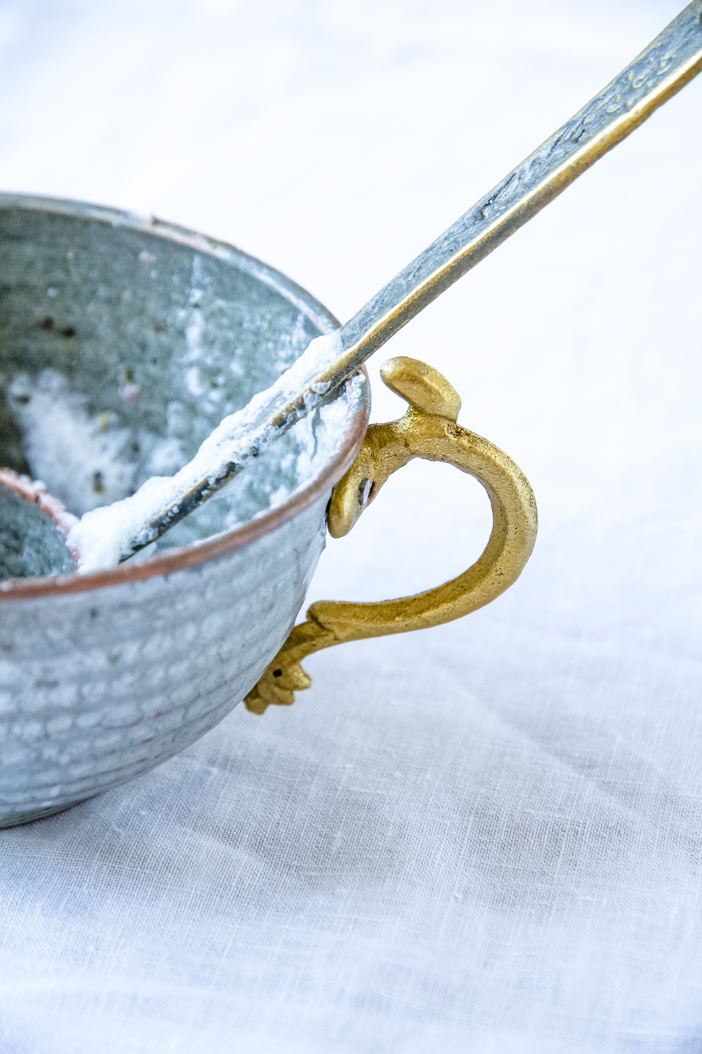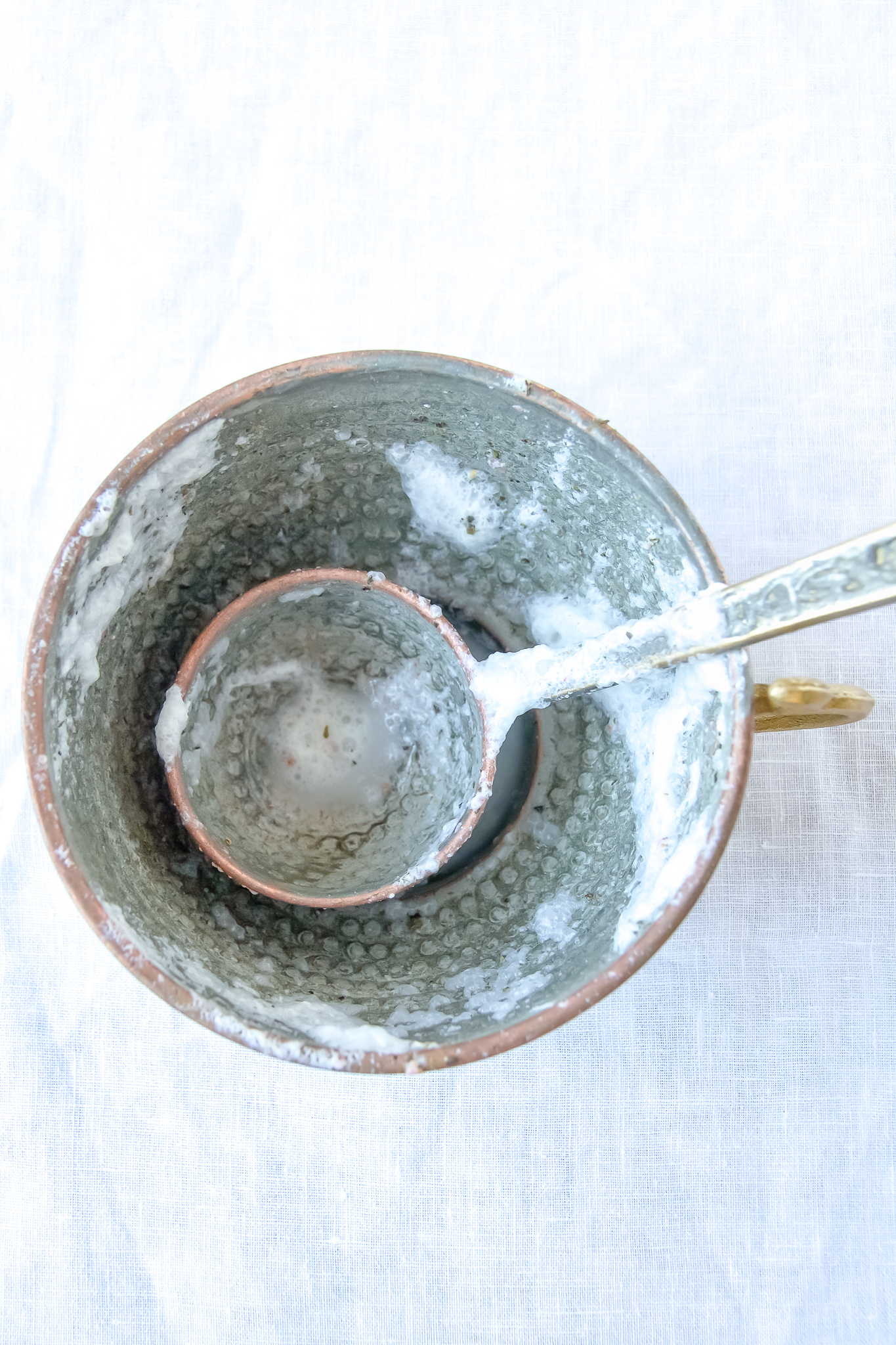 Am liebsten verwende ich getrocknete Minze und Damaszener Rosenblütenblätter um mein Dugh zu aromatisieren. Dabei nehme ich meine eigene Minze aus dem Garten, die ich kurz vor der Blüte zurückschneide, trockne und vor Gebrauch zwischen den Händen fein reibe.