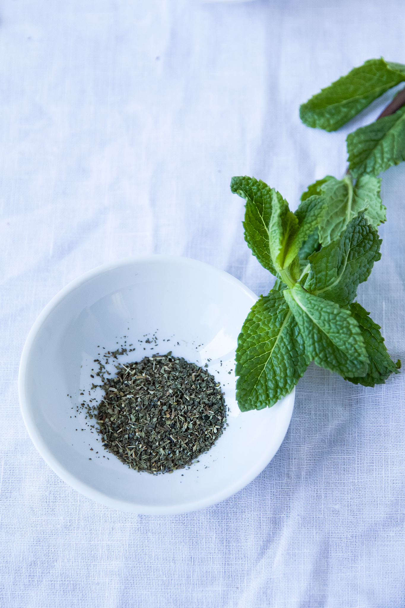 TIPP: verwende einen Beutel Pfefferminztee, schneide den Beutel auf und benutze den Inhalt zum würzen. Das klappt wirklich prima, denn die Minze ist wunderbar fein gemahlen.
