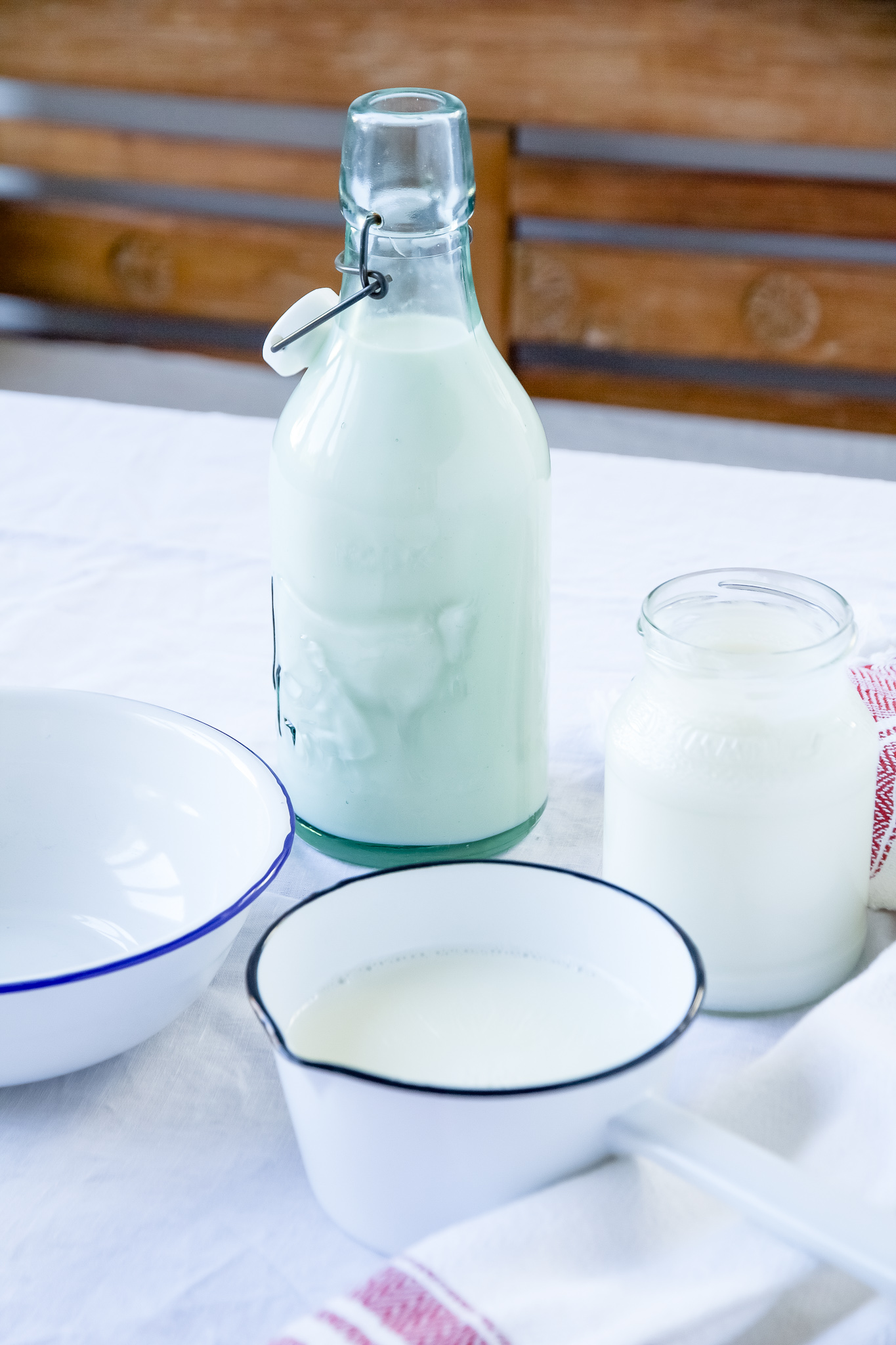 Frische Milch einmal aufkochen um die Keime abzutöten. Solltest du H-Milch benutzen, dann kannst du die Milch in einem Topf auf 80° erhitzen, vom Herd nehmen und auf 40° abkühlen. Dafür verwendest du am Besten einen Thermometer.