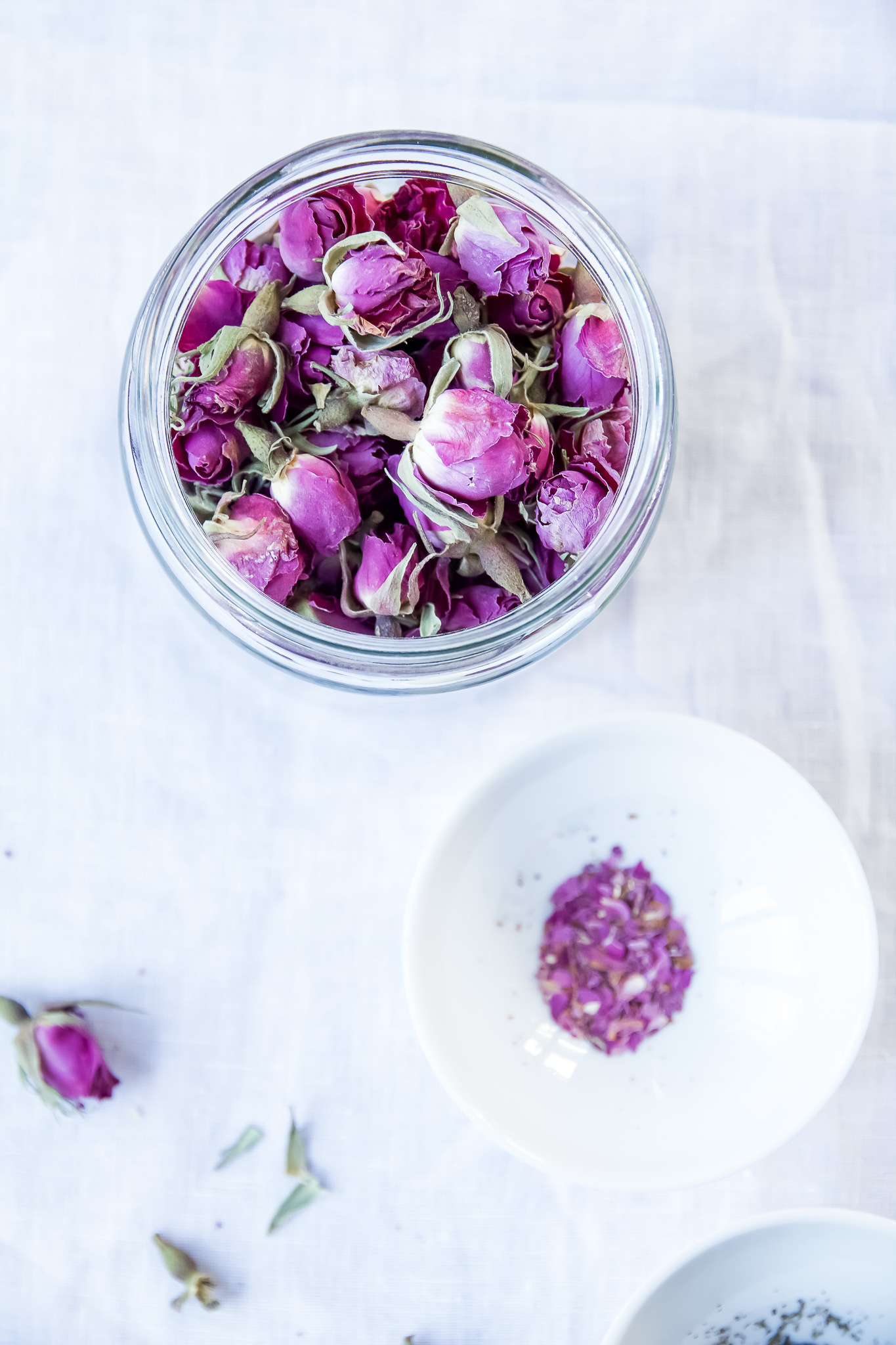 es reichen ein Teelöffel von den Rosenblättern, achte darauf sie ganz fein zu mahlen.
