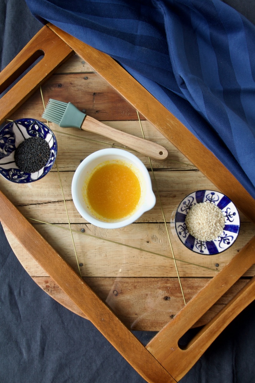 Mit Sesam und Schwarzkümmel bestreuen.