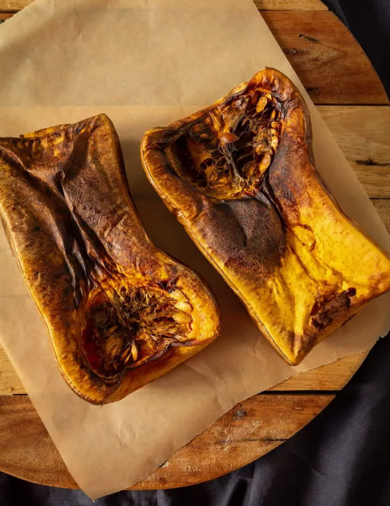 Das Ergebnis? Buttrig-weiches, aromatisches Kürbisfleisch, das du direkt auslöffeln und zu cremigem Püree verarbeiten kannst. Perfekt als Basis für Suppen, Desserts, Kuchen oder meine geliebten Kaka Kadu – persische Kürbispancakes, bei denen das Kürbispüree der heimliche Star ist.