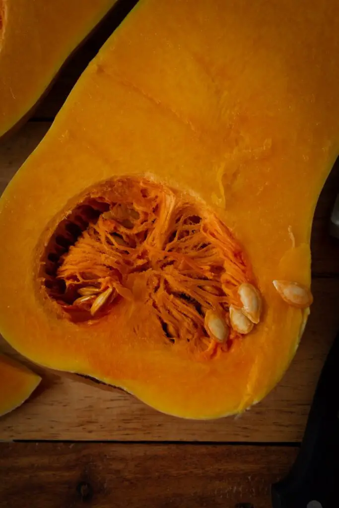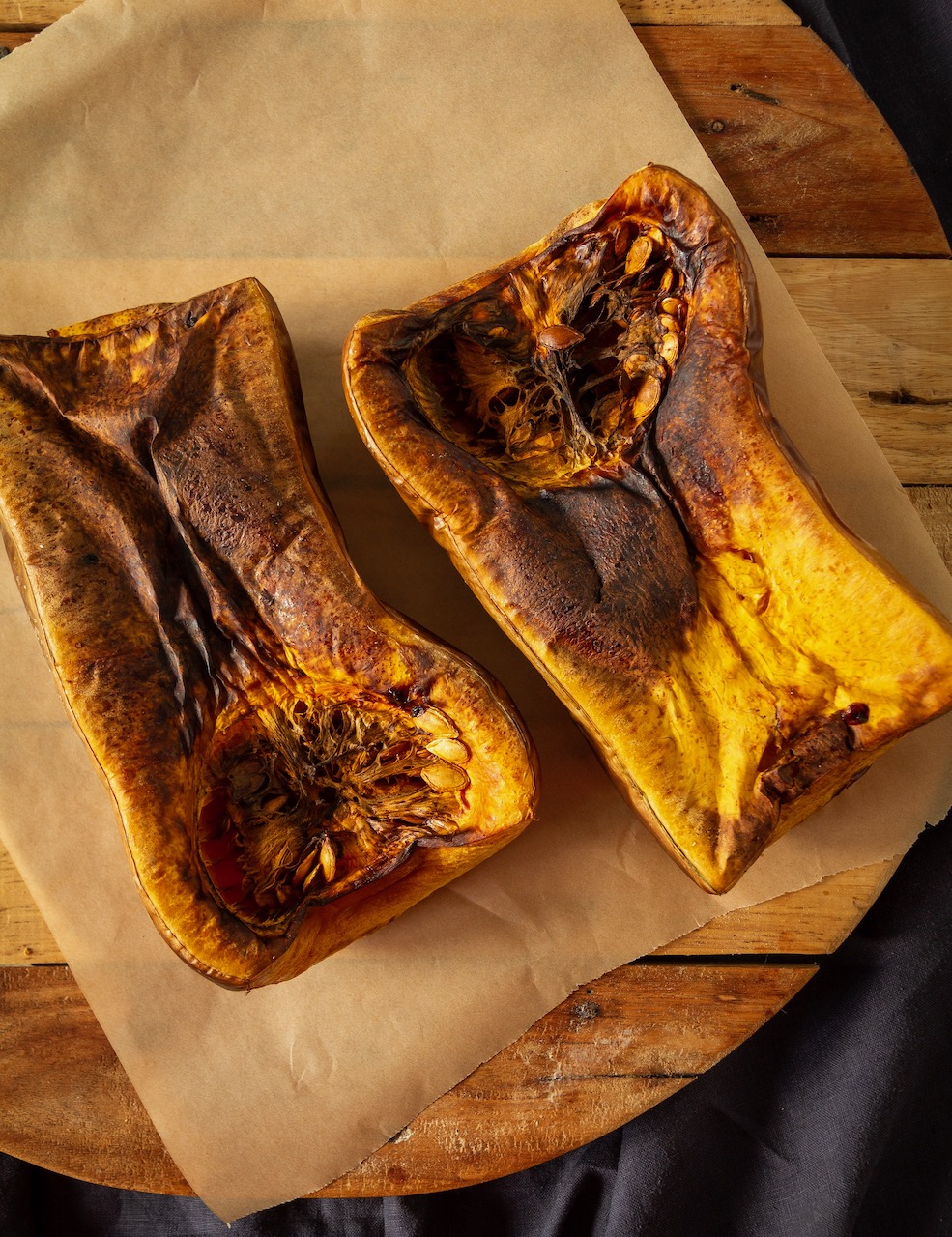 Tipp: Hokkaido muss nicht ausgehöhlt werden, seine Schale wird beim Backen butterweich und kann einfach mitpüriert werden.