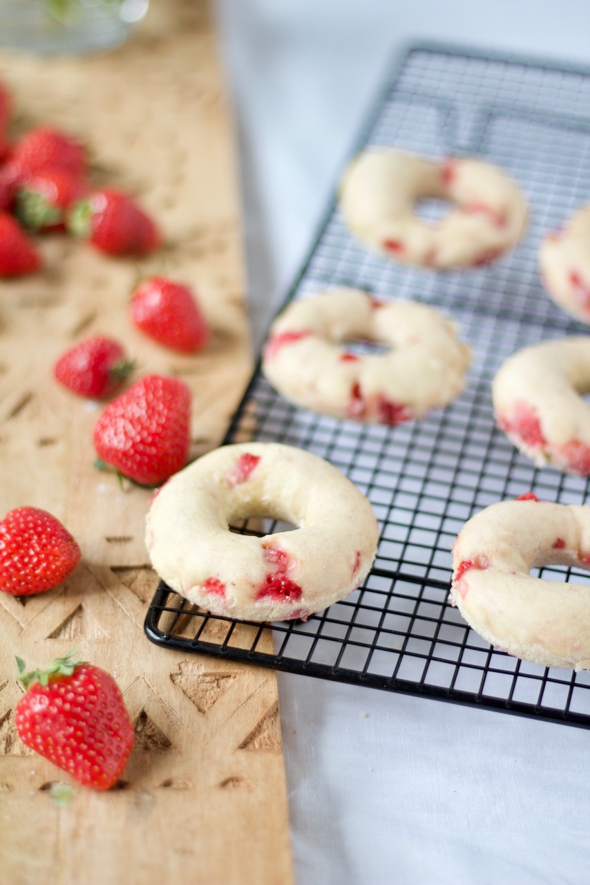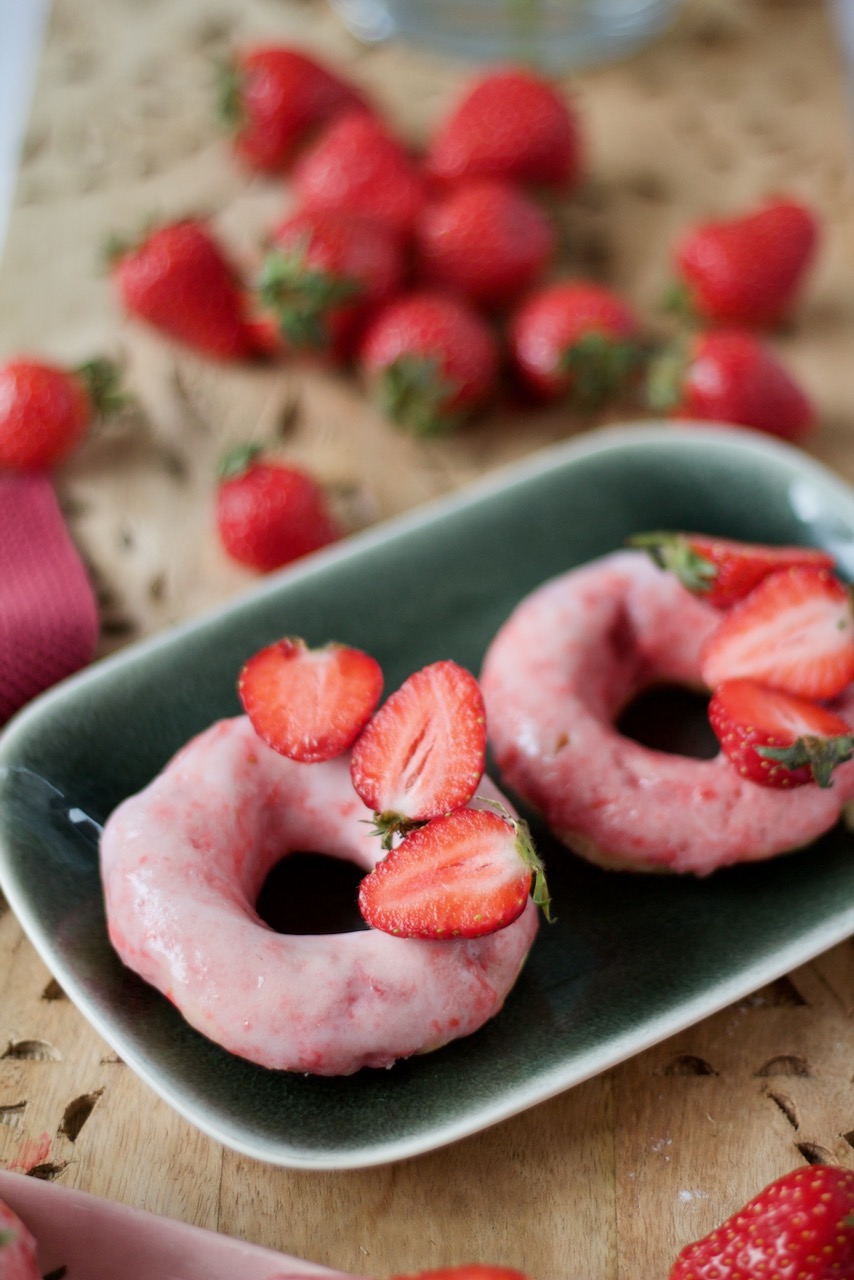 Dinkelliebe | Backblog Foodblog Genussblog Doughnuts mit Erdbeerglasur