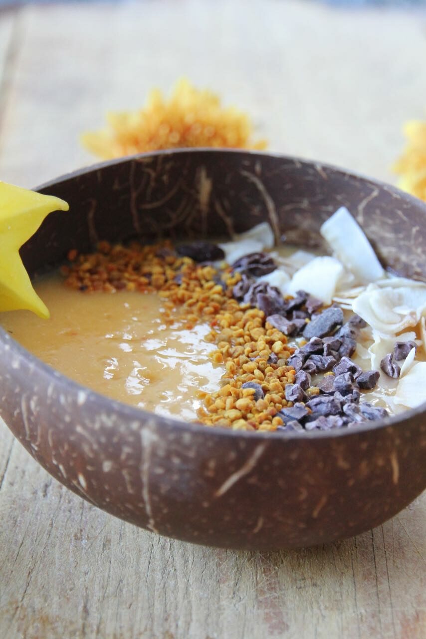 Den Sonnenschein in der Schüssel mit einem Hauch von Tropic, da kommt doch Freude, Begeisterung auf und du kannst positiv in den Tag starten. Orange hat einen Appetitanregenden Effekt, das kennst du bestimmt, wenn du eine Orange siehst, da läuft dir doch sofort das Wasser im Mund zusammen. Zusätzlich stimulieren orangefarbene Lebensmittel die Verdauung, das Immunsystem und den Stoffwechsel. Ich liebe diese tropisch, fruchtig, samtig weiche Konsistenz der Smoothie, mit dem crunchigen Topping. Er schmeckt so zart und lecker zugleich. Lass dich von meinem paradiesischen Smoothiebowl in die Tropen entführen.