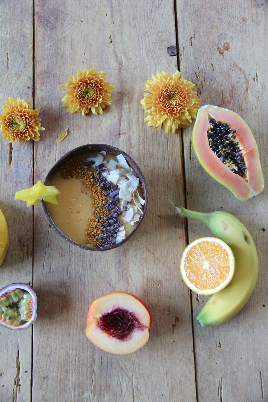Orange ist die Farbe des Herbstes. Nicht nur in der Mode oder in der Natur leuchtet die Farbe Orange, sondern auch heute in meinem tropischen Exotic Smoothie Bowl Rezept. Die Farbe Orange steht für Sonnenschein, Wärme, Tropen, positive Energie, Lebenslust, Freude und Begeisterung. Wenn das mal nicht tolle Zutaten für ein Frühstück sind.