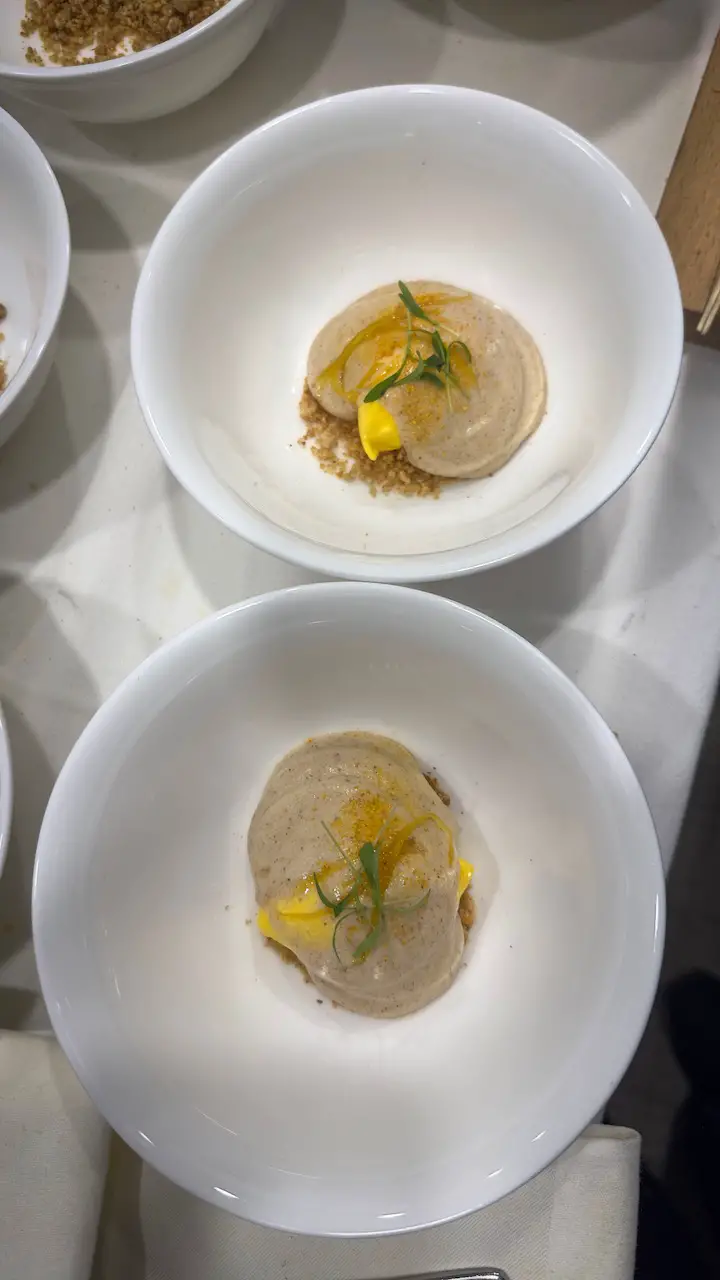 Wer hätte gedacht, dass Land und Meer so harmonisch Hand in Hand gehen können? Dominik Schab vom Restaurant „1831“ im Wasserschloss Hugenpoet in Essen hat uns mit einer Kombination überrascht, die auf dem Papier mutig klingt und am Gaumen einfach nur brillant war. Sein Kabeljau traf auf Kalbskopf und Miesmuscheln. Eine Textur-Explosion, die durch die Frische von Fenchel, die feine Süße von Holunder und die Knackigkeit von saurem Spargel perfekt ausbalanciert wurde. Ein unglaublich spannender Teller, der zeigt, wie modern und kreativ die deutsche Spitzenküche heute interpretiert wird!