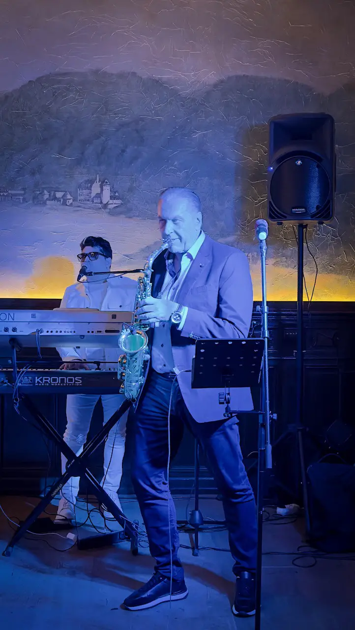 Während wir uns von Station zu Station schlemmten, sorgten Flavius & Eurosound für die richtige Stimmung. Das Saxophon-Spiel von Flavius ist legendär, und als seine Tochter Linda Teodosiu (ein echter Vocal-Star!) anfing zu singen, hielt es niemanden mehr auf den Stühlen. Die Atmosphäre war so prickelnd wie der Champagner in unseren Gläsern.