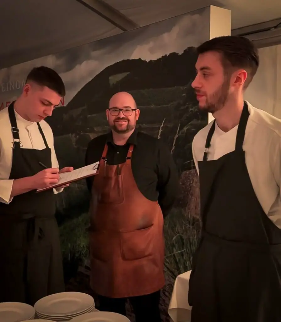 Peter Fridén* vom PURS Luxury Boutique Hotel in Andernach brachte mit seine Kombu-gebeizter Saibling eine raffinierte asiatische Note ins Spiel. Stell dir vor, wie der butterzarte Fisch, veredelt durch eine tiefgründige Kräuterdashi und cremiges Shiromiso, am Gaumen regelrecht schmilzt, während die fermentierte Karotte für einen aufregenden Frische-Kick sorgt. Ein echtes Umami-Erlebnis!