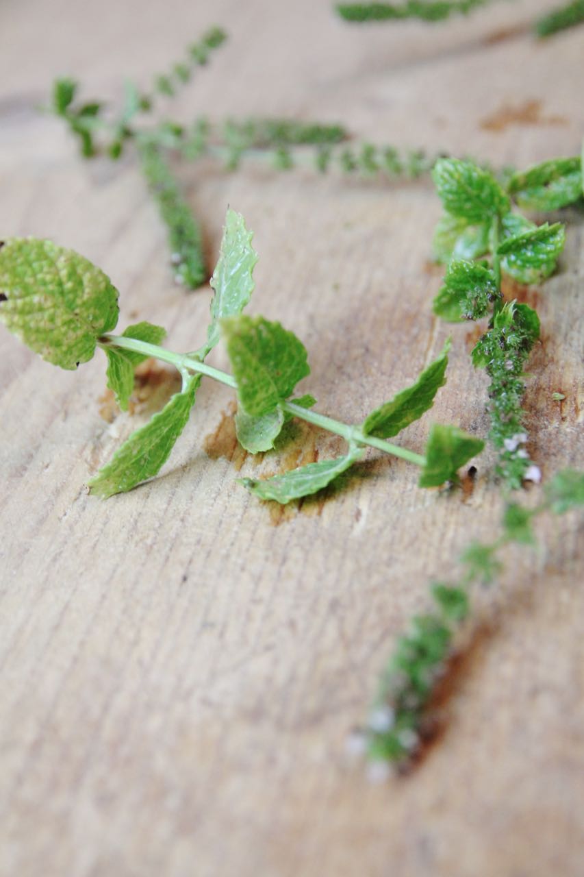 Pfefferminze und das Kraut der Fenchel abspülen,