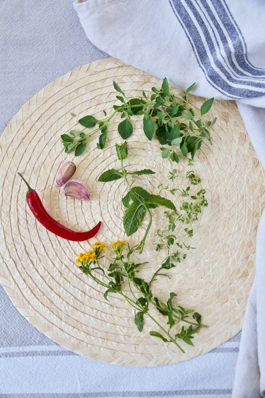 - Oregano,, Thymian, Minze und Estragon nach Geschmack