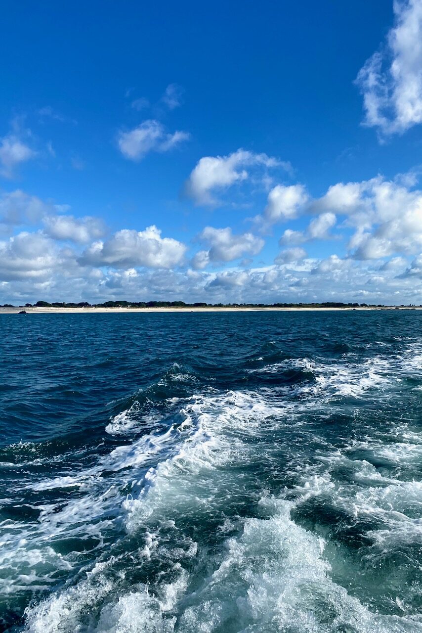 Das Boot hüpft über die Wellen, mit dem Duft des Meeres in der Nase und dem frischen Wind durch das Haar steigt auch die gute Laune. Vom Meer aus offenbart sich die einzigartige Schönheit der bretonischen Küste. Ich bin verzaubert von der Vielfalt der malerischen Landschaft und das intensive Licht, ein unvergesslicher Ausflug. Jetzt kann ich auch schon am Horizont den roten Leuchtturm von Guilvinec erkennen. Er hat etwas magisches und ist für die Heimkehr in den sicheren Hafen für die Fischerboote lebenswichtig.