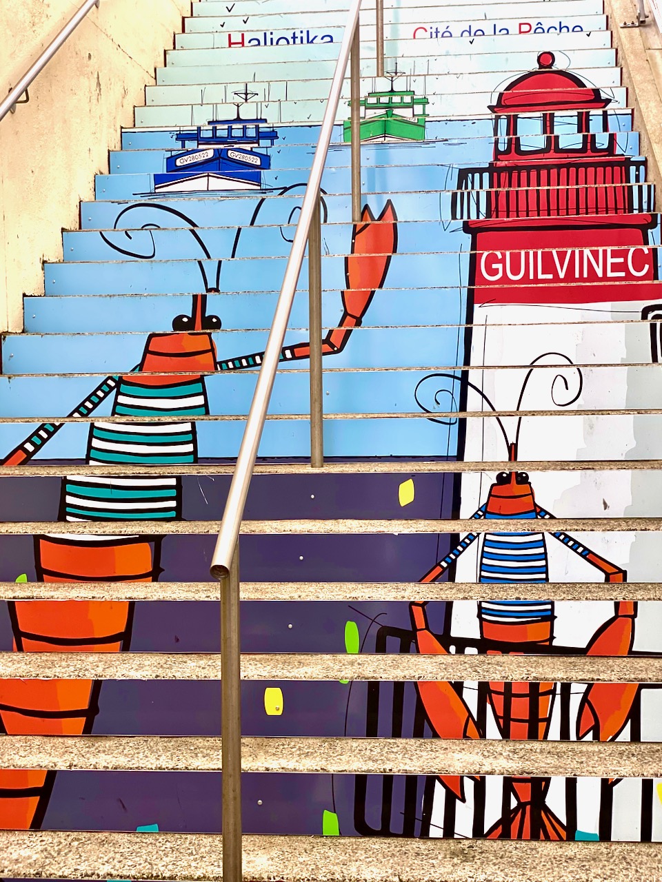 Am nächsten Morgen kommen wir im Loctudy an, dem zweitwichtigsten Fischerei Hafen der Bretagne. Der Tourelle des Perdrix, ein wunderschöner Leuchtturm mit hübschem schwarz-weißen Schachbrettmuster, erstrahlt im stimmungsvollen Morgenlicht. Gegenüber richtet sich unser Blick auf die kleine Insel Ile Tudy. Ein Angler erzählt mir, dass die Insel früher nicht mit dem Festland verbunden war und nur mit dem Boot errreicht werden konnte. Nachdem wohlhabende Pariser und Bretonen ihre Feriendomizile hier errichtet haben, führt nun eine Straße zur Insel. Der Hafen von Loctudy ist bekannt für den Fang von „Demoiselles de Loctudy“, die rosa rote Kaisergranate.