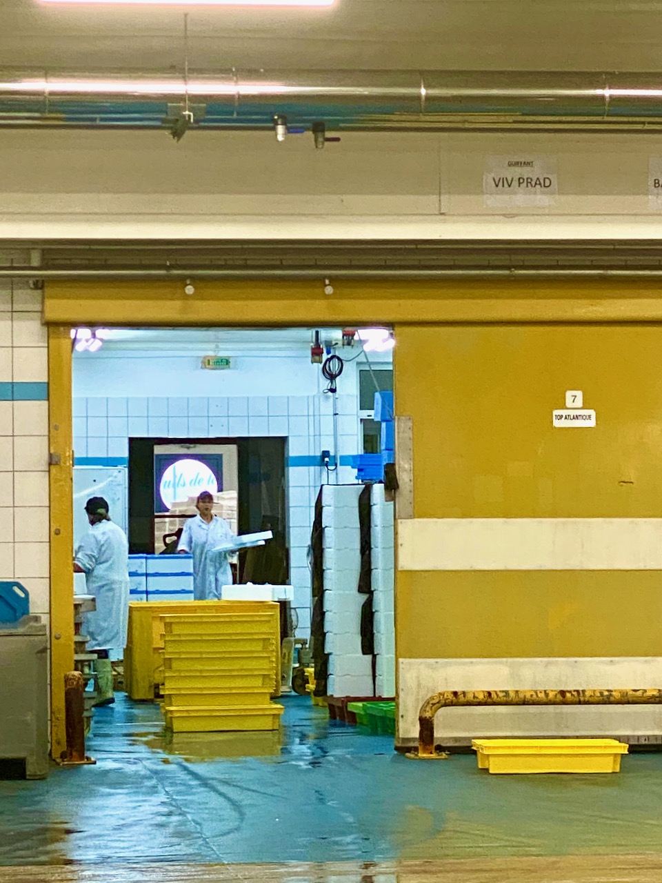 Es herrscht sofort ein reges Treiben, die Fischer machen ihr Boot mit einer Leine am Bug fest und heben die Kisten mit noch zappelnden Kaisergranaten, Seeteufel, Rochen, Merlan, Tintenfische, Sardinen uvm. aus ihren Booten. Freiwillige Rentner stehen bereits mit Rollwägen am Kai, nehmen die frische Quailtätsware entgegen und bringen sie in die Auktionshalle, indem die Edelfische nach Fangmethode, Qualität und Größe sortiert werden. Den fangfrischen Fisch kann jeder in der kleinen Poissonerie (Fischladen) direkt neben der Auktionshalle einkaufen.