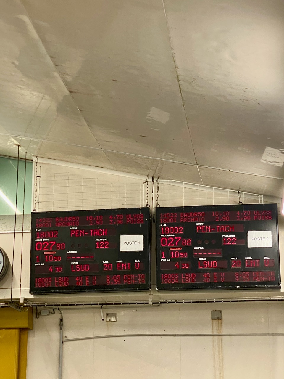 Im Criée, die Fischversteigerungshalle ist es eiskalt und es riecht nach Meer und frischer Fisch. Der Profi Einkäufer Guy von Moulin Loctudy kauft hier für Frische Paradies ein und er weiß genau nach welcher Qualitätsware er Ausschau halten muss. Er erkennt auf den ersten Blick die beste Ware, die in den Kisten auf Fließbändern an ihm vorbeirollen. Auf einer digitalen Anzeigetafel werden Infos zu den Booten und der Ware, wie z. B. das Gewicht und der Startpreis angezeigt. Die Auktion beginnt mit einem hohen Preis und geht immer weiter runter bis der erste Käufer zuschlägt.