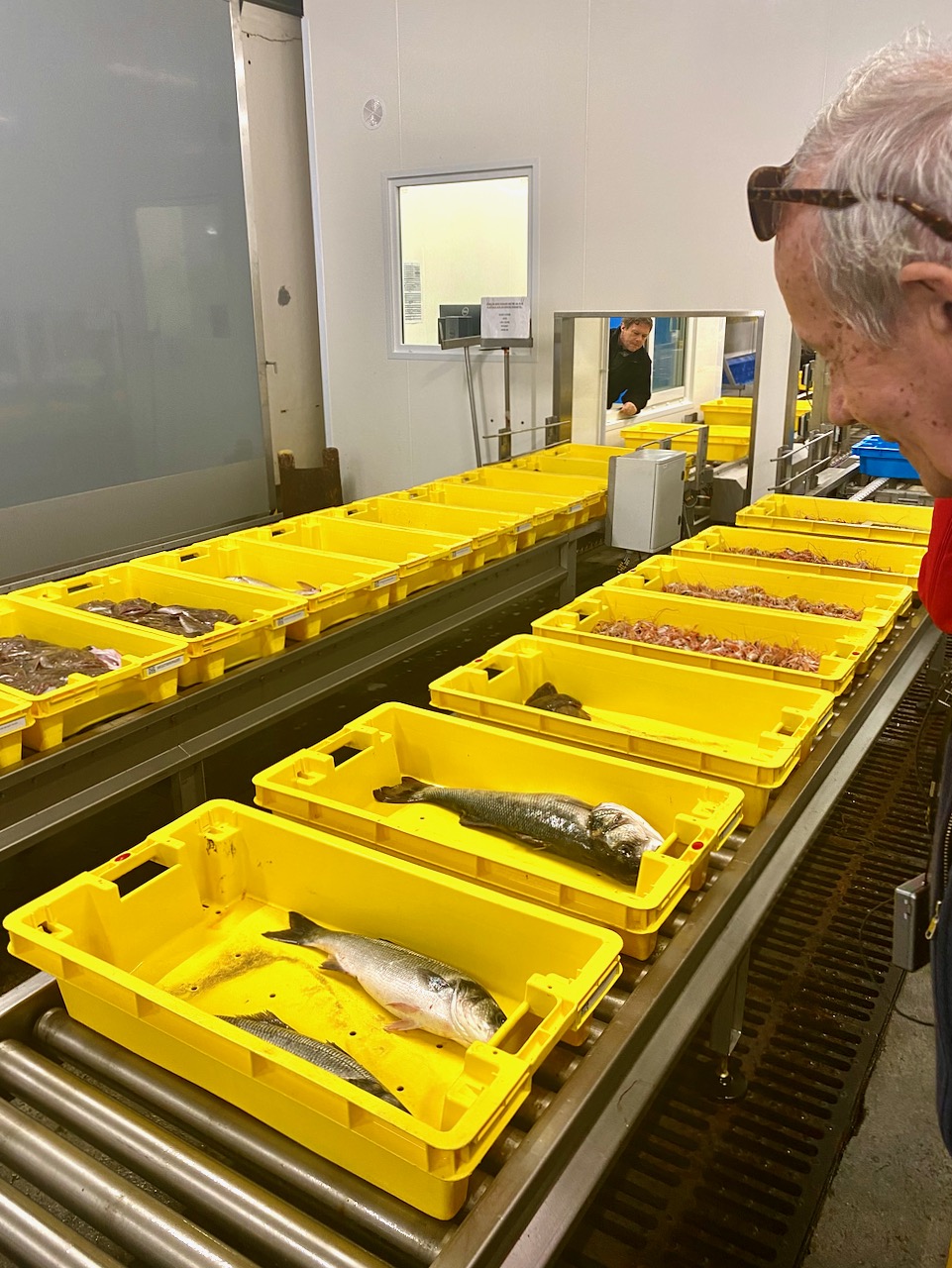 Was ihm aktuell sorgen macht ist der Klimawandel und die Überwärmung der Meere. Die Fischer spüren das! Früher gab es nur Kaltwasserfische, mittlerweile sind Fischsorten aus wärmeren Gebieten hier angesiedelt. Vor allem der Pulpo, anfänglich freuten sich die Fischer über den Pulpo, mittlerweile wird es ihnen unheimlich. Diese nimmersatten Räuber fressen besonders gerne die wertvollen Hummer, Langusten und Jakobsmuscheln. Ihre Babys ernähren sich bis zur 3 Monate lang von Garnelenlarven. Nicolai erzählte uns am Vormittag im Moulin, das von 10.000 Tonnen Fang am Morgen 8000 Tonnen Pulpo waren. Philipp wünscht sich perspektivisch einfach mehr Unterstützung vom Staat für die Fischer.