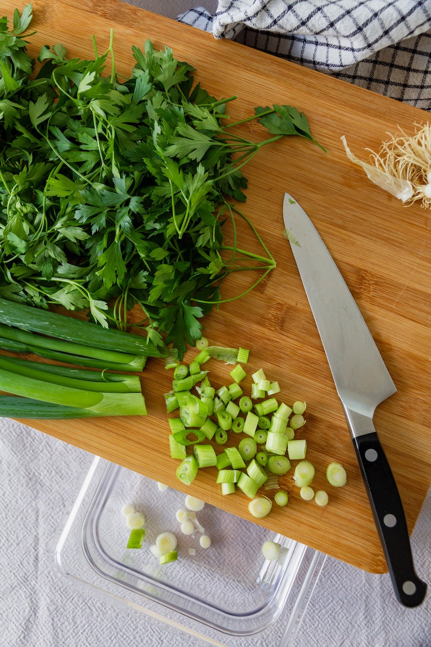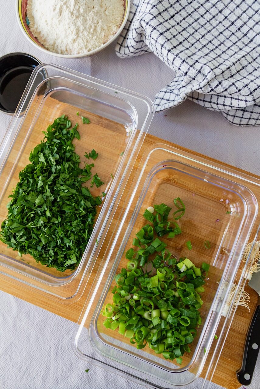 Meine Nan-e Sabzi Mashhadi – Persischer Kräuterfladen mit Frühlingszwiebeln, glatter Petersilie und Kurkuma habe ich in dem Burger-Brötchen-Blech von Birkmann aus der Kollektion Laib und Seele gebacken. Da der Teig für meine Kräuterfladen etwas weich ist, habe ich Backpapier verwendet. Du siehst, dieses Blech eignet sich nicht nur perfekt für Burger Buns – wie z. B. meine Kurkuma Burger Buns –, sondern auch für kleine Fladenbrote.