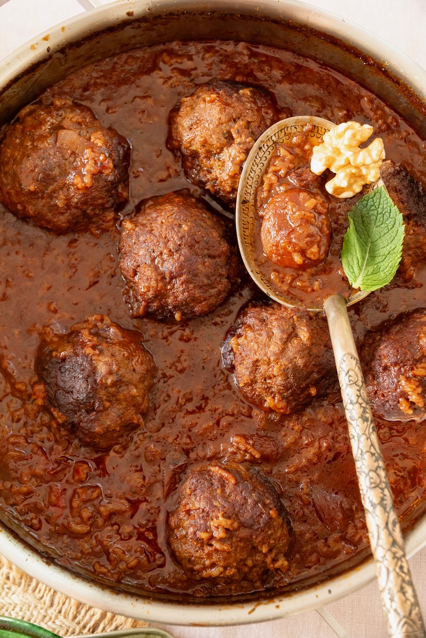 Es hat richtig Spaß gemacht, die köstlichen Koofteh Kermanshahi – Persische gefüllte Hackbällchen – im Schmortopf der ELO Limited Edition zuzubereiten. Die Hackbällchen, gefüllt mit getrockneten Aprikosen, Walnüssen und Rosinen, schmoren langsam in einer fantastischen Sauce aus Granatapfelmark, Tomatenmark und Reis, bis sich alle Aromen wunderbar vereinen.