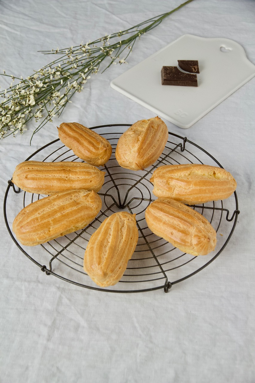 Eclairs im vorgeheiztem Backofen bei 200° 15 Minuten lang backen.