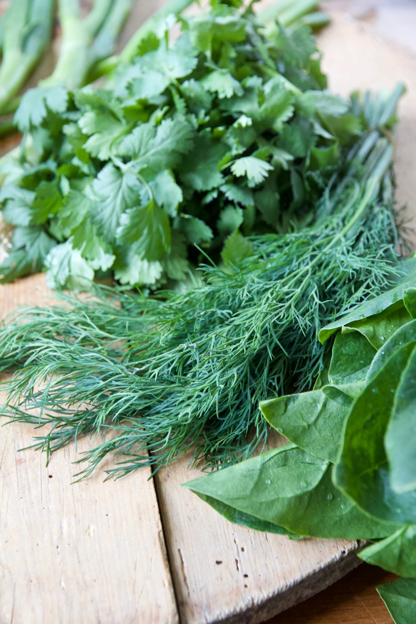 Die Kräuter für ca. 10 Minuten im kalten Wasser einweichen und dann so fest es geht ausdrücken.