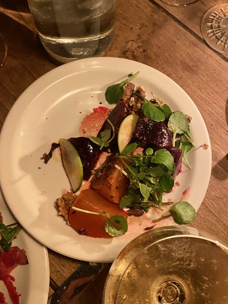 Einige Pints gehen hier schon seit mehr als 100 Jahren über den imposanten, mit Zinn verziertem Mahagonitresen, der sich über die gesamte Länge des Pubs erstreckt. Ein wirklich schönes Pub voller Charme und Charakter, das sogar im Obergeschoss ein schickes Hotel beherbergt. Wir nehmen auf den mit lederbezogenen Bänken und Holztischen Platz und genießen kühlen gezapften britischen Cider und einige Pints, bevor wir uns etwas frisch machen für das Abendessen. Aber vorher wartet eine weitere Challenge auf uns, denn jetzt geht es darum, alle Köche, die wir kennen, auf einer Liste anzukreuzen und ein oder zwei Sätze über sie zu erzählen.