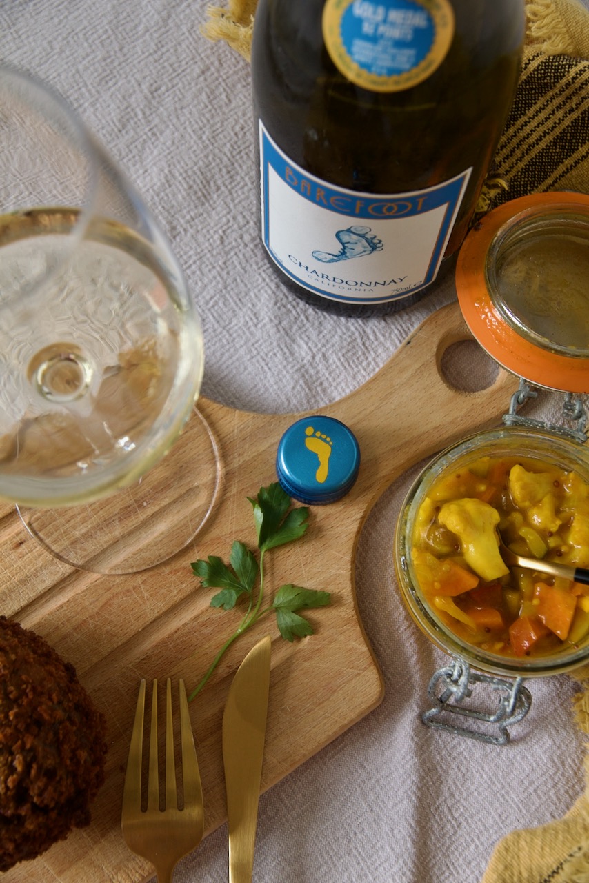 Haggis Scotch Eggs mit Senf und Picalilli servieren. Dazu passt der fruchtige Chardonnay von Barefoot Wine.