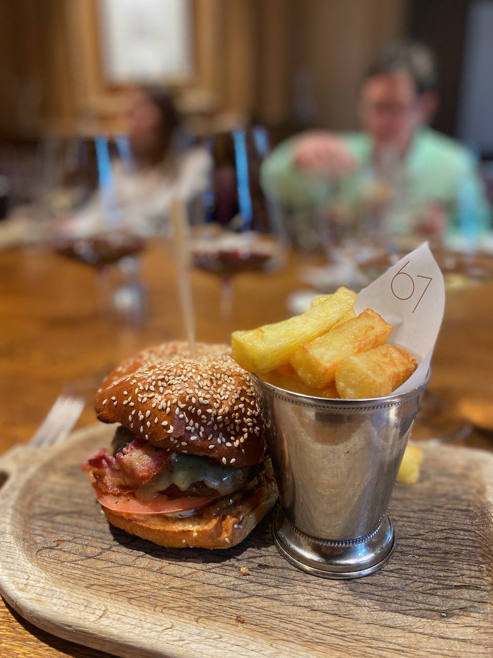 67 Burger, Cheese, Pancetta, Triple-cooked chips