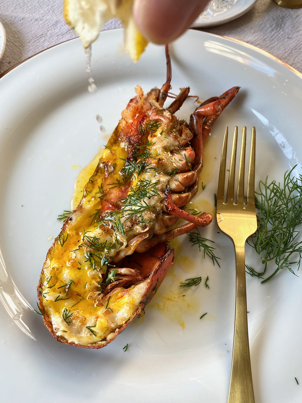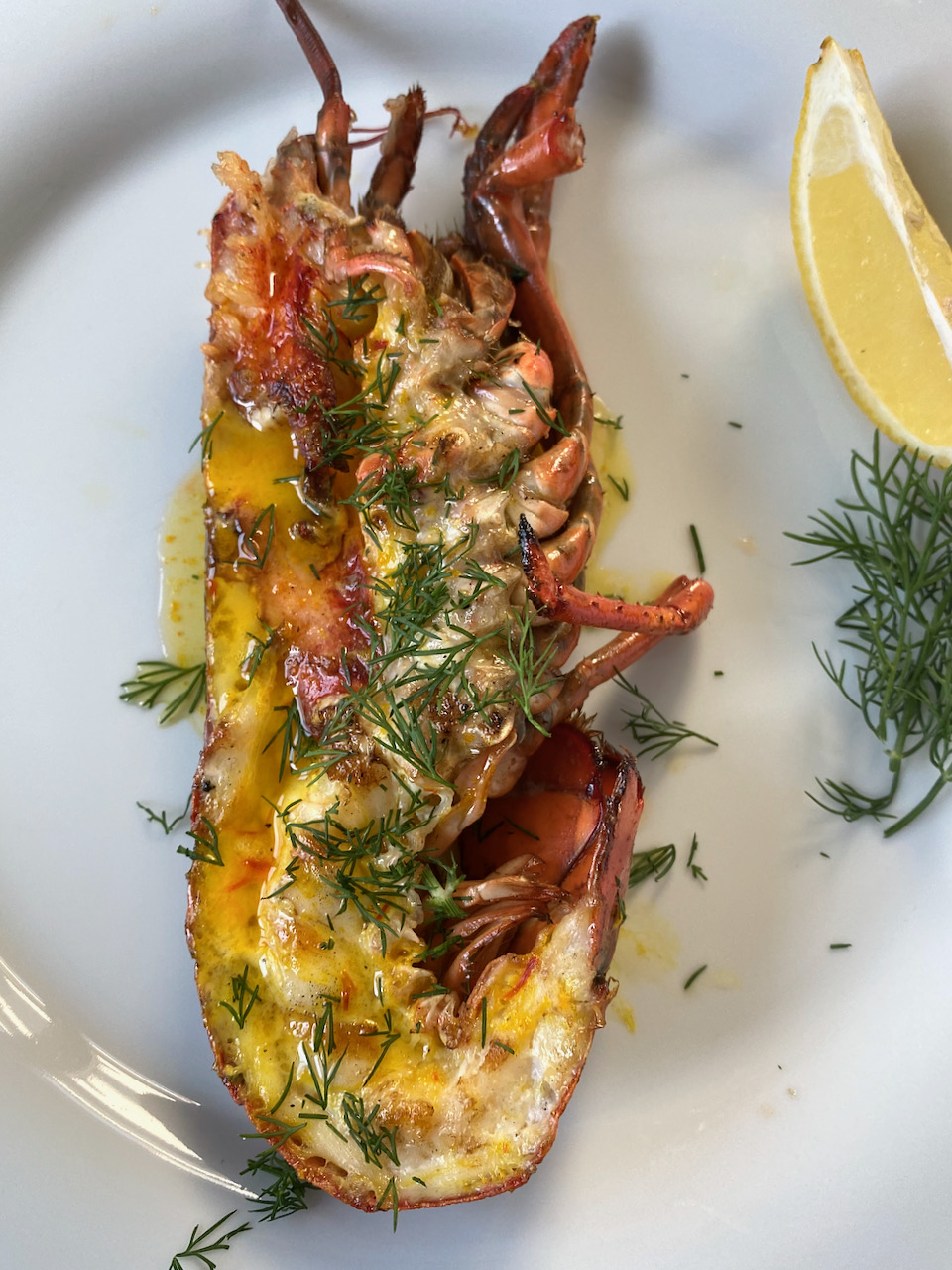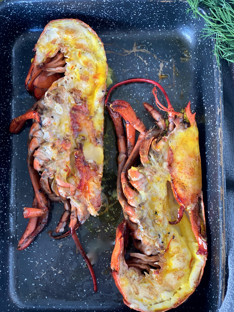 Drizzle lobster halves with remaining saffron butter and sprinkle with chopped dill. If you desire, you can enjoy them with a little lemon juice.