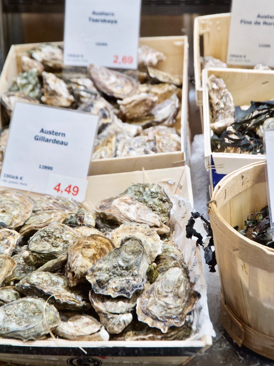 Es geht los mit einer Schale voller Austern. Ich weiß, hier scheiden sich die Geister, entweder man liebt sie oder eben nicht. Iiiiich liebe sie! Die FrischeParadies Austern Fines de Claires stammen aus Aquakulturen und werden nach speziellen Qualitätsvorgaben in der Bucht von Mont St. Michel gezüchtet und gereift. Probiere doch auch mal das Felsenaustern Sortiment* von FrischeParadies – ein Set aus 3 Sorten Normandie, Bretagne, und Plate. Austern sind ganz einfach zu essen. Mit der Austerngabel das Fleisch von den Muskeln lösen, nur noch ein kleiner Spritzer Limetten- oder Zitronensaft darauf träufeln, die Schale zum Mund führen und möglichst geräuscharm schlürfen.