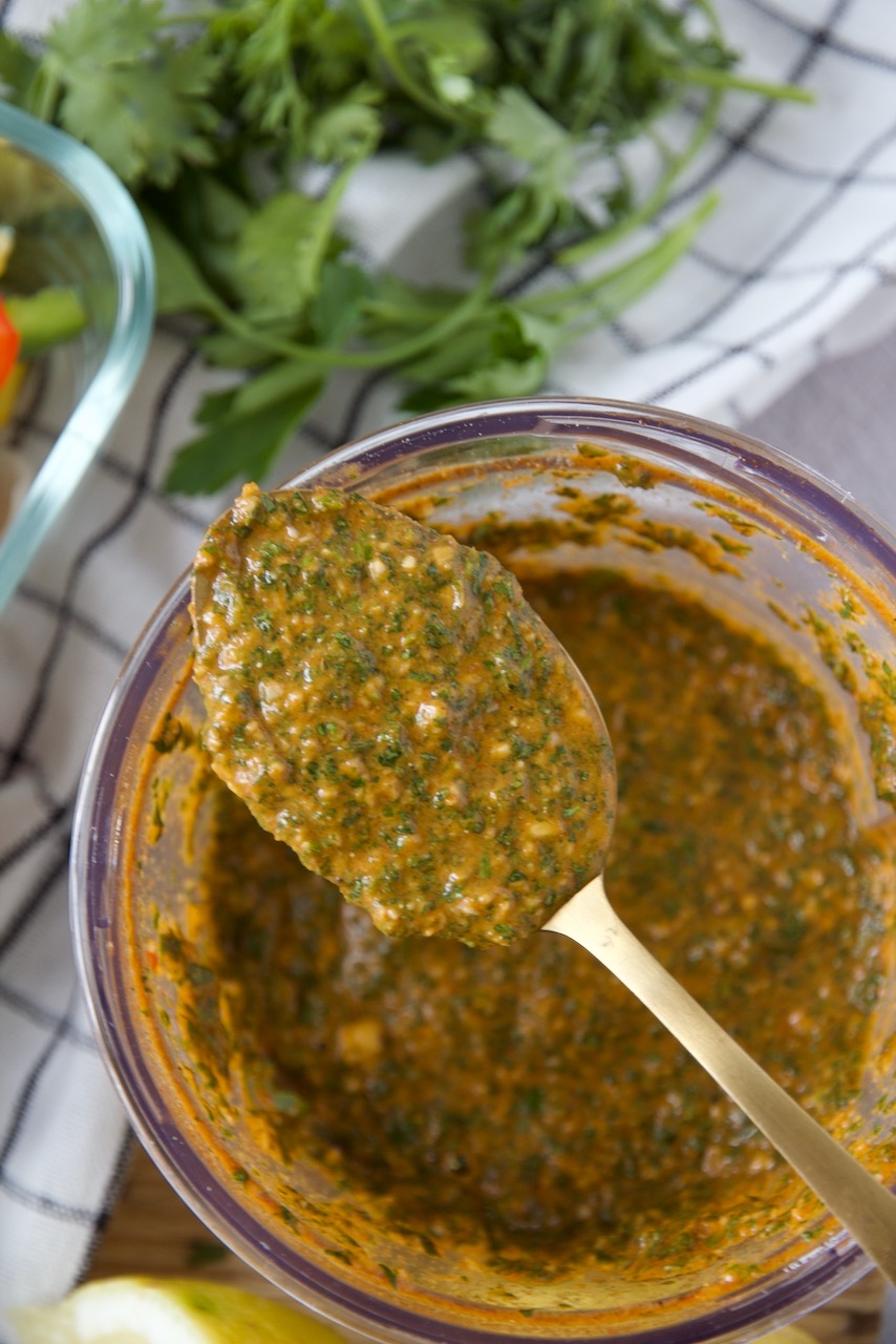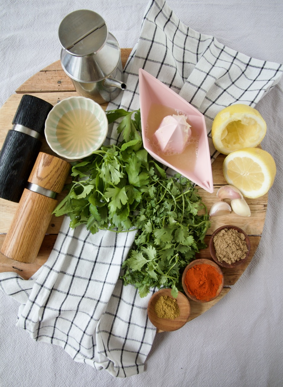 Ich bereite ja gerne Speisen in mehreren Schritten zu, so auch in diesem Rezept. Als Marinade mische einfach frisch gepressten Knoblauch, Paprika-, Koriander- und Kuminpulver mit Olivenöl, Zitronensaft und Weißweinessig. Etwas glatte Petersilie und frischer Koriander sorgen für ein tolles Aroma. Nur noch mit Salz und Pfeffer würzen und dann das geschnippelte Gemüse über Nacht in der Marinade einlegen. Sie sind einfach vorzubereiten und so lecker mariniert sind sie ein absoluter Gaumenschmaus.