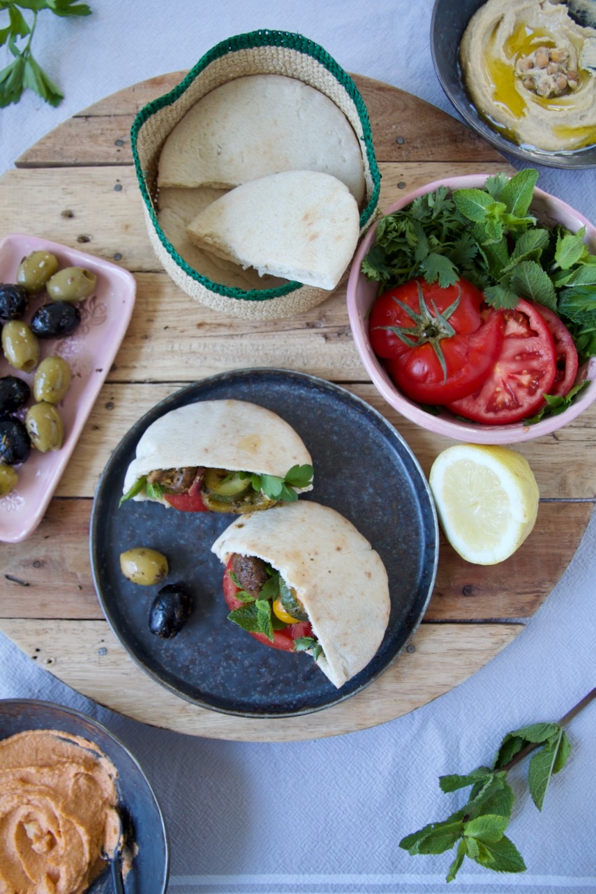 Am Besten passt dazu ein Dip, wie z. B. Hummus. Sehr lecker schmecken sie auch, wenn du sie in ein Pita-Brot* packst und mit etwas Tomaten und Kräuter ergänzt.