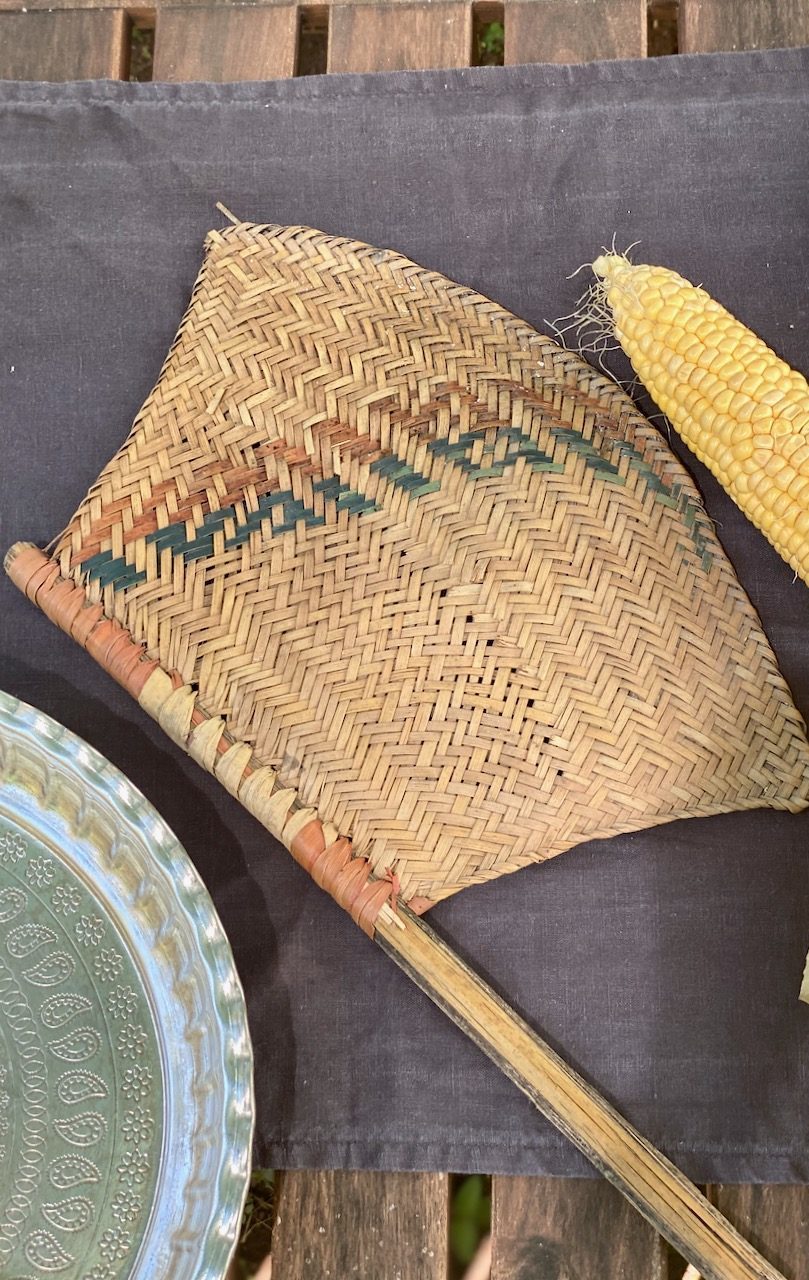 Kabab Koobideh wird auf ein einfaches seekh (سیخ) – dünne Metallspieße ohne Holzgriff gesteckt, die 2,5 cm breit und 60 cm lang sind und über einen Manghal (ein persischer Grill) gegrillt. Ich habe sowohl die Seekh Version mit einem Holzgriff, siehe hier, als auch die ohne Griff. Einen Manghal bekommst du für wenige Euros in persischen Lebensmittelgeschäften oder du bestellst ihn hier. Die Entfernung zwischen Kohle und Fleisch ist in einem Manghal sehr niedrig und so gelingt dir das perfekte Kabab Koobideh. Aber vorher muss die Holzkohle schön glühen, dafür wird es mit einem Bad Bezan (ein Handfächer) auf Hochtouren gebracht. Erst wenn die Holzkohle rot glüht und mit einer Ascheschicht bedeckt ist, kannst du loslegen.