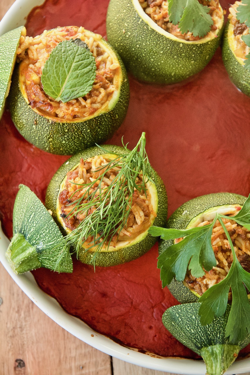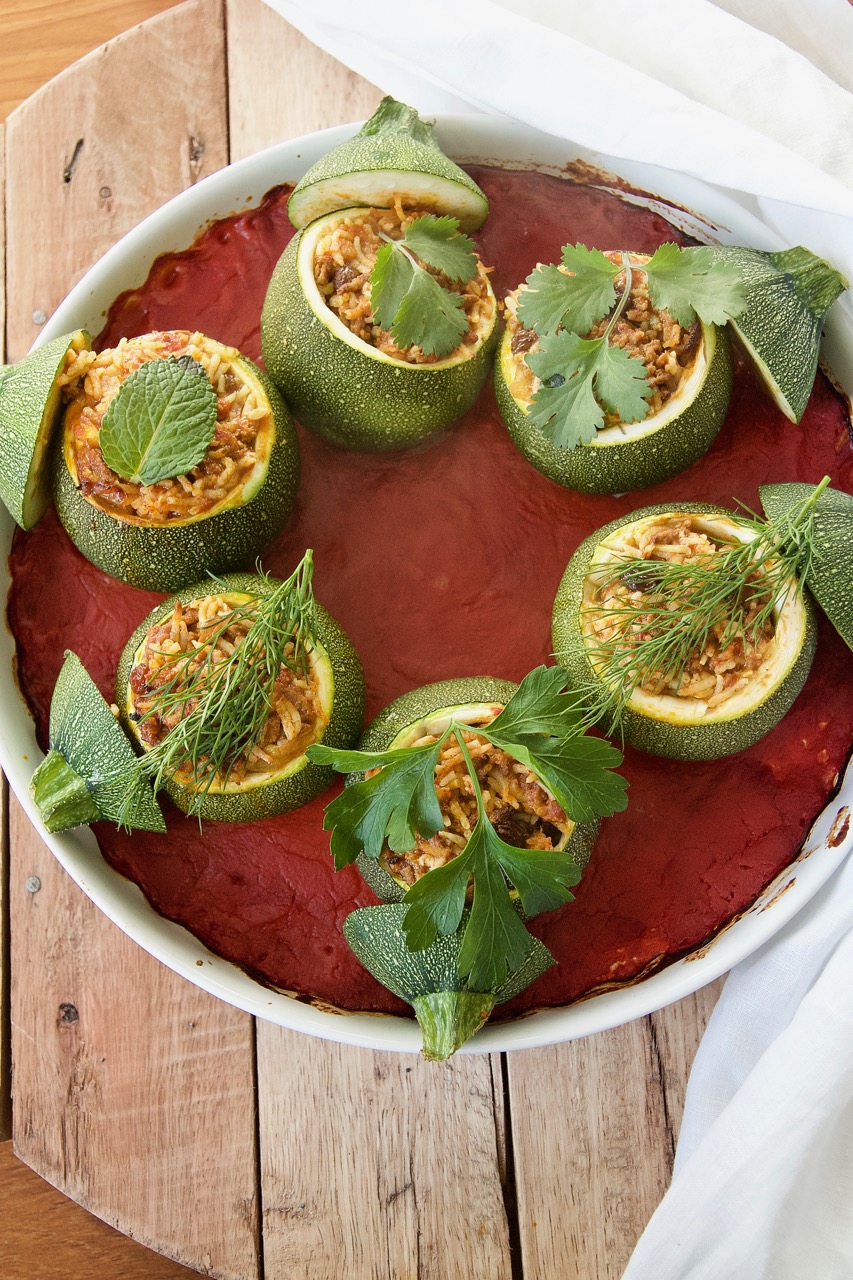 Heute habe ich ein Rezept für Kadu Shekampor-e Fendjani – Gefüllte Rondini nach persischer Art für dich. Gefüllte Rondini sind so lecker, dass sogar Kinder, die nicht so gerne Gemüse essen Lust bekommen diese auszuprobieren. Meine Kadu Shekampor-e Fenjani habe ich mit Basmatireis, gelbe Spaltlinsen, Rinderhack, Korinthen, Zwiebeln, viele frische Kräuter, wie Estragon, Dill, glatte Petersilie, Minze gefüllt und mit orientalische Gewürze wie Kurkuma, Safran und Zimt gewürzt und in Tomatensoße gebacken. Dank der runden Form lassen sich die Rondinis ganz leicht füllen. Ein einfaches und dennoch köstliches Rezept, probiere es unbedingt aus!
