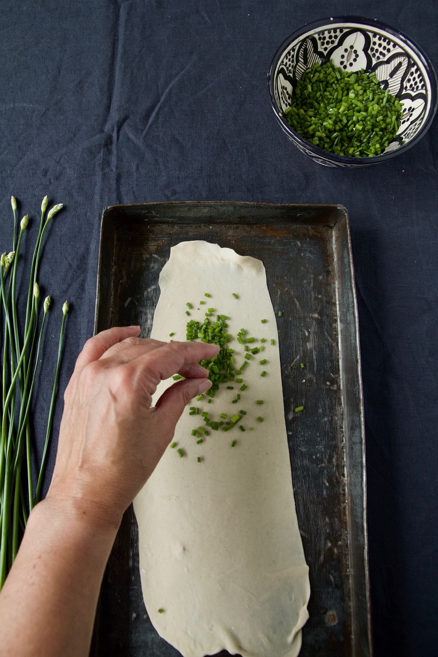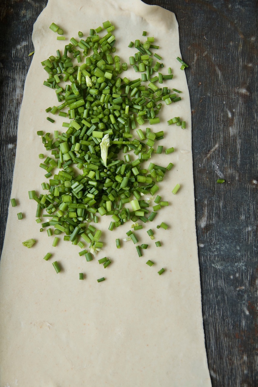Gefülltes Lavash Brot mit Schnittknoblauch und Frühlingszwiebeln