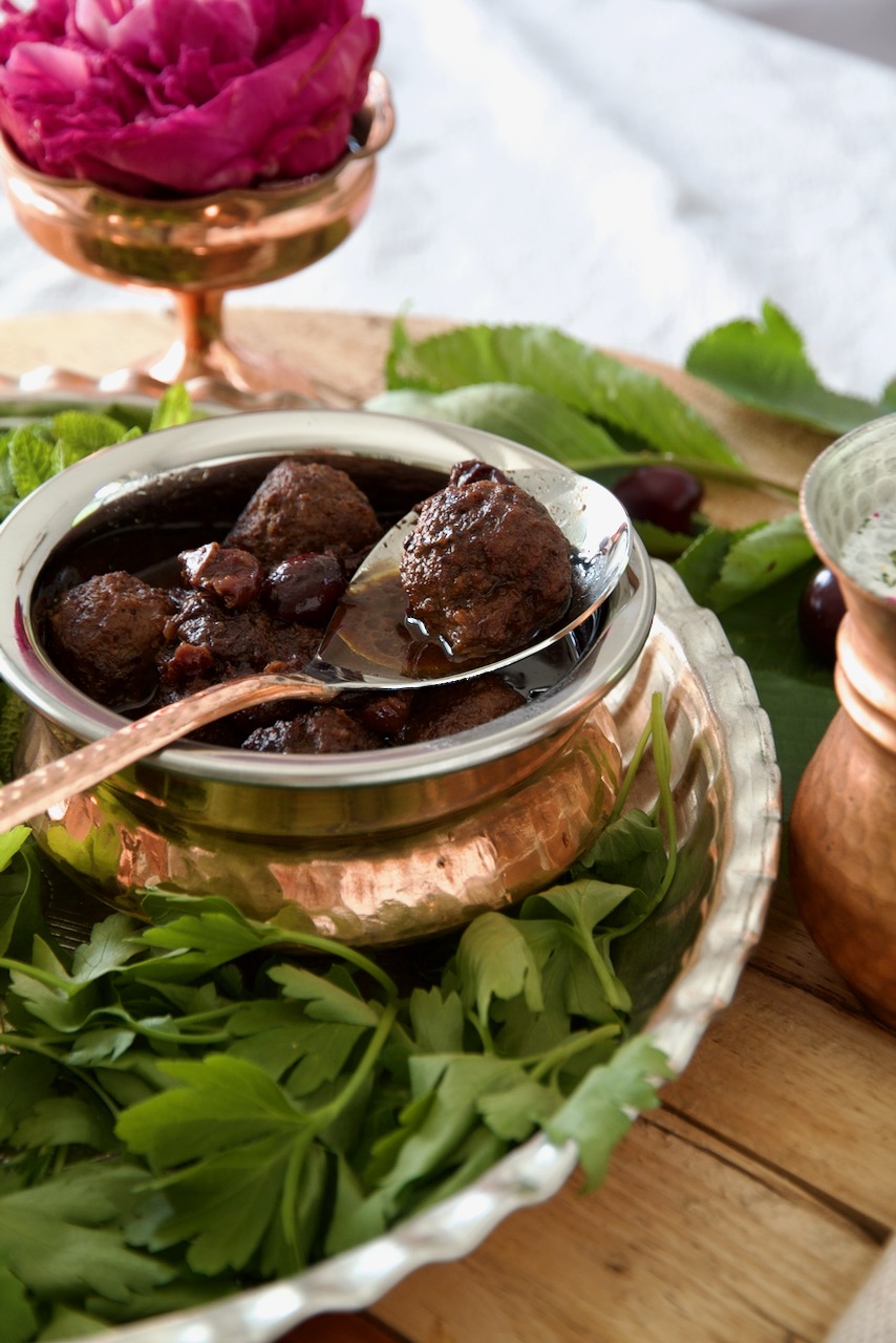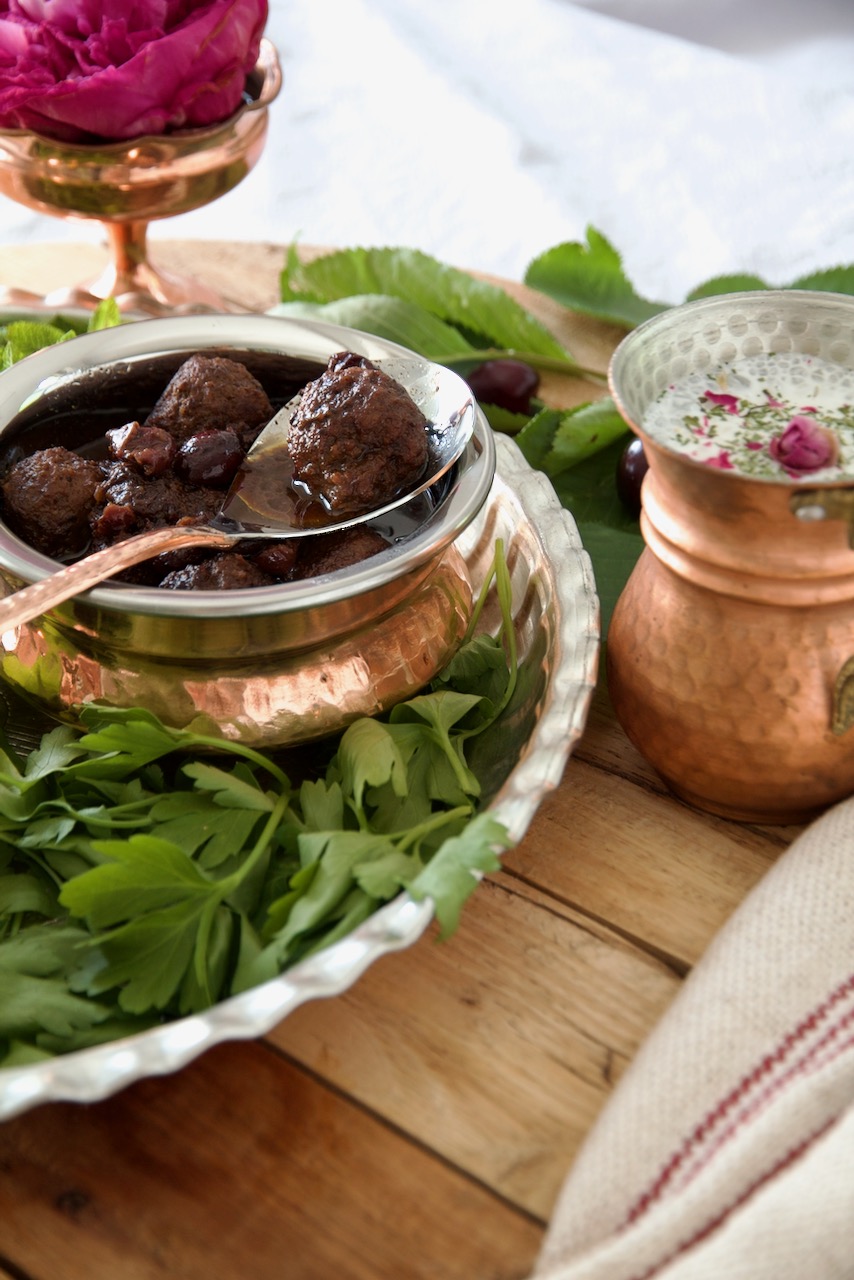 Khoresh-e Albaloo – Lamm-Hackbällchen in Sauerkirschsauce خورش آلبالو