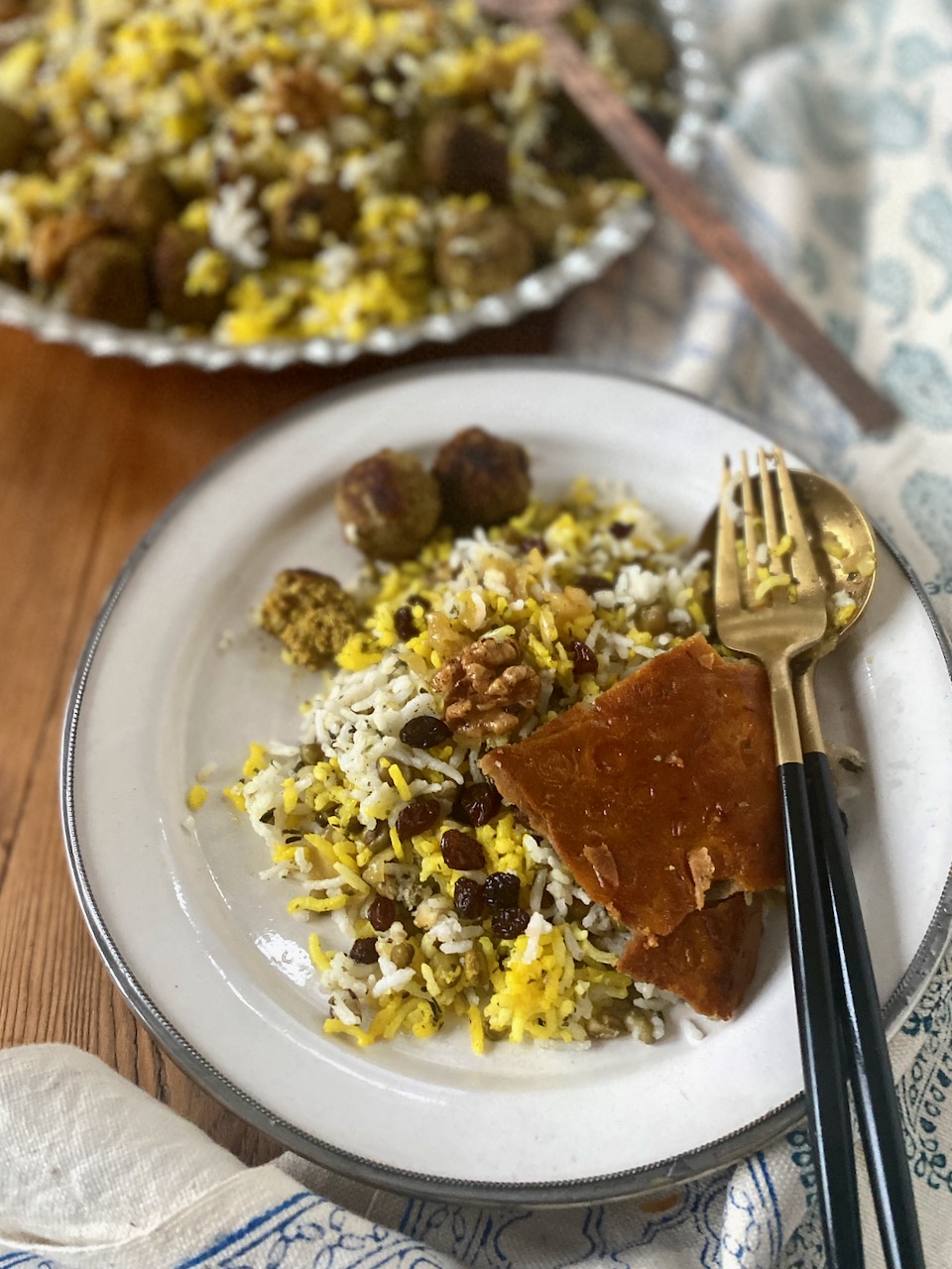 - Susan von Labsalliebe mit Mash polo – Rice with Mung Beans and Meatballs ماش پلو