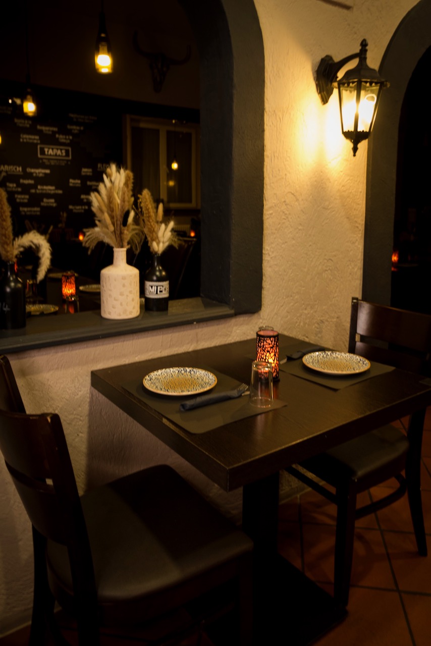 Das Interieur ist landestypisch eingerichtet, erinnert auch an eine moderne spanische Tapas Bar. Ein großer Raum ist in zwei verschiedene Bereiche aufgeteilt, das schafft unterschiedliche Atmosphären und wird multifunktional genutzt. Ein separater Bereich ist ideal für Veranstaltungen oder private Feiern. Durch die gezielte Aufteilung des Raumes in verschiedene Bereiche ist eine vielseitige Umgebung geschafft, die den Bedürfnissen der Gäste und den verschiedenen Aktivitäten im Lokal gerecht wird, wie z. B. für Special Events mit Live Musik.